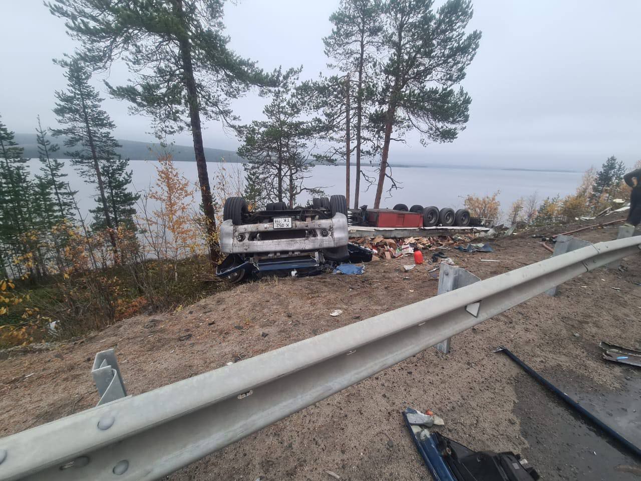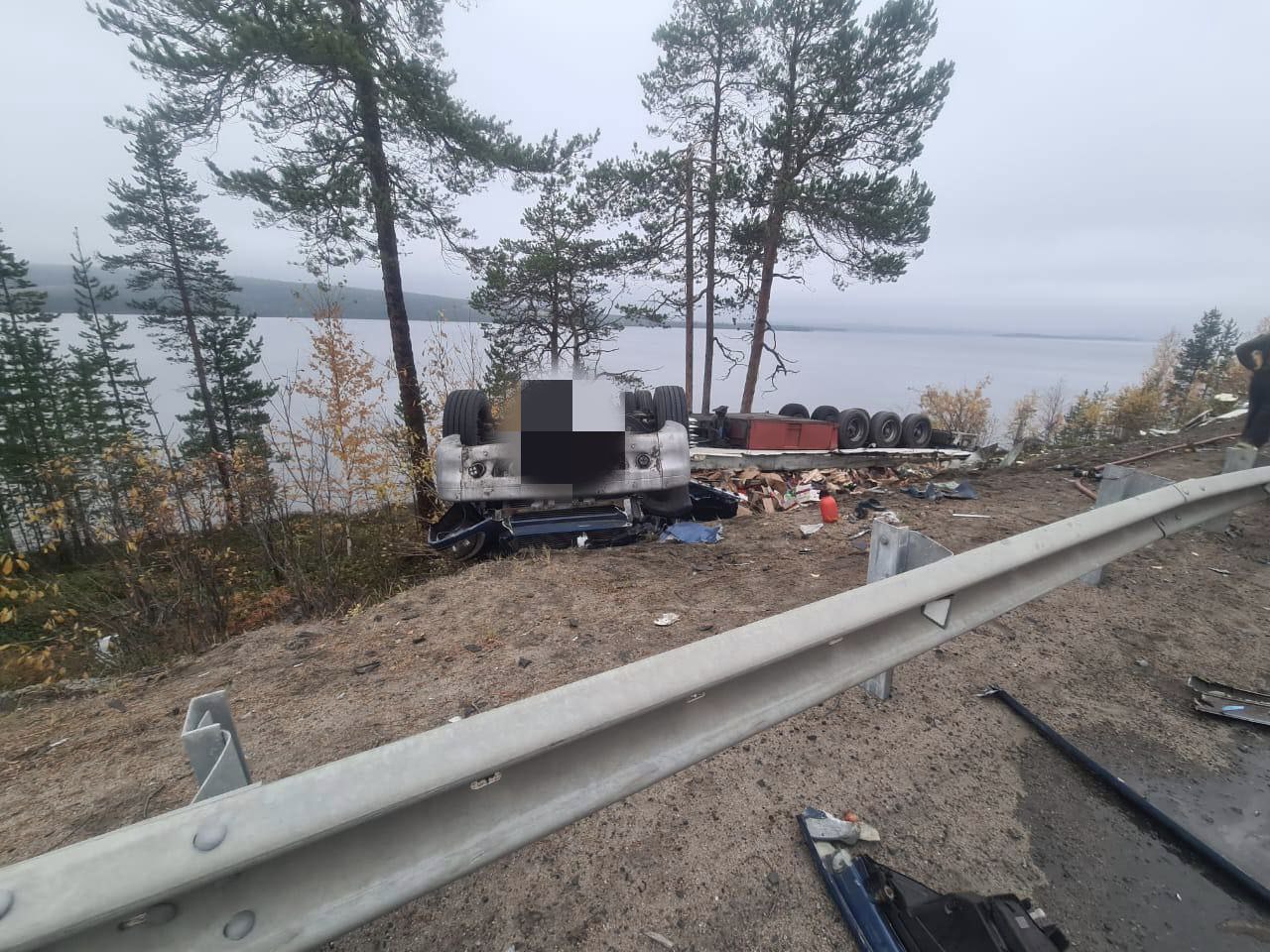 По предварительной информации: сегодня в 6 часов 30 минут в районе 1192 км автодороги Р-21 "Кола" (Полярнозоринский район), водитель,1972 года рождения, управляя автомобилем FREIGHTLINERCL120064ST (фура), потерял контроль над управлением ТС и допустил съезд в правый по ходу движения кювет.
