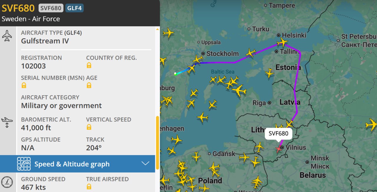 И вот это — уже не совсем обычная история. При этом интересен не сам борт (мы его видели уже много раз) и не вовлеченность недавних нейтралов в разведывательную активность, направленную против РФ, а то, что скандинавы сегодня работают именно на Калининградском направлении.