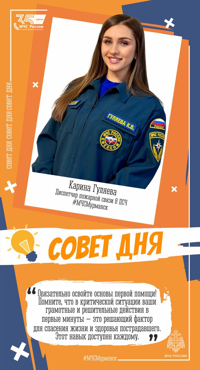 «Обязательно освойте основы первой помощи! Помните, что в критической ситуации ваши грамотные действия в первые минуты - это решающий фактор для спасения жизни и здоровья пострадавшего. Этот навык доступен каждому», - отмечает Карина Гуляева, диспетчер пожарной связи 8 ПСЧ #МЧСМурманск.