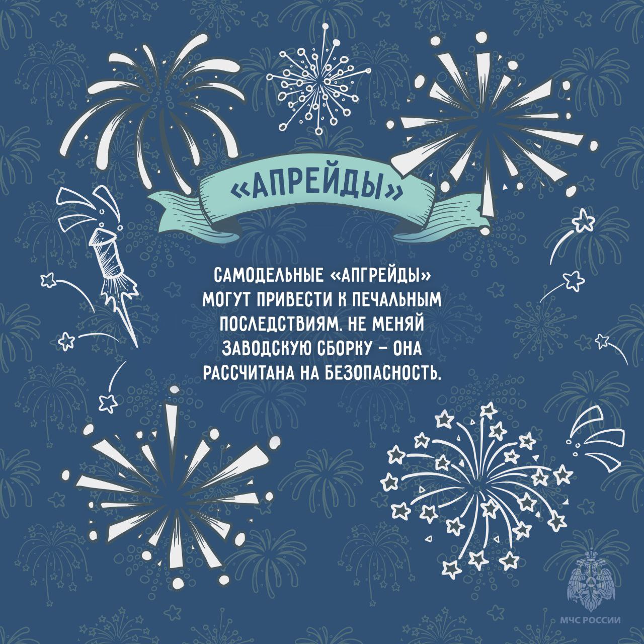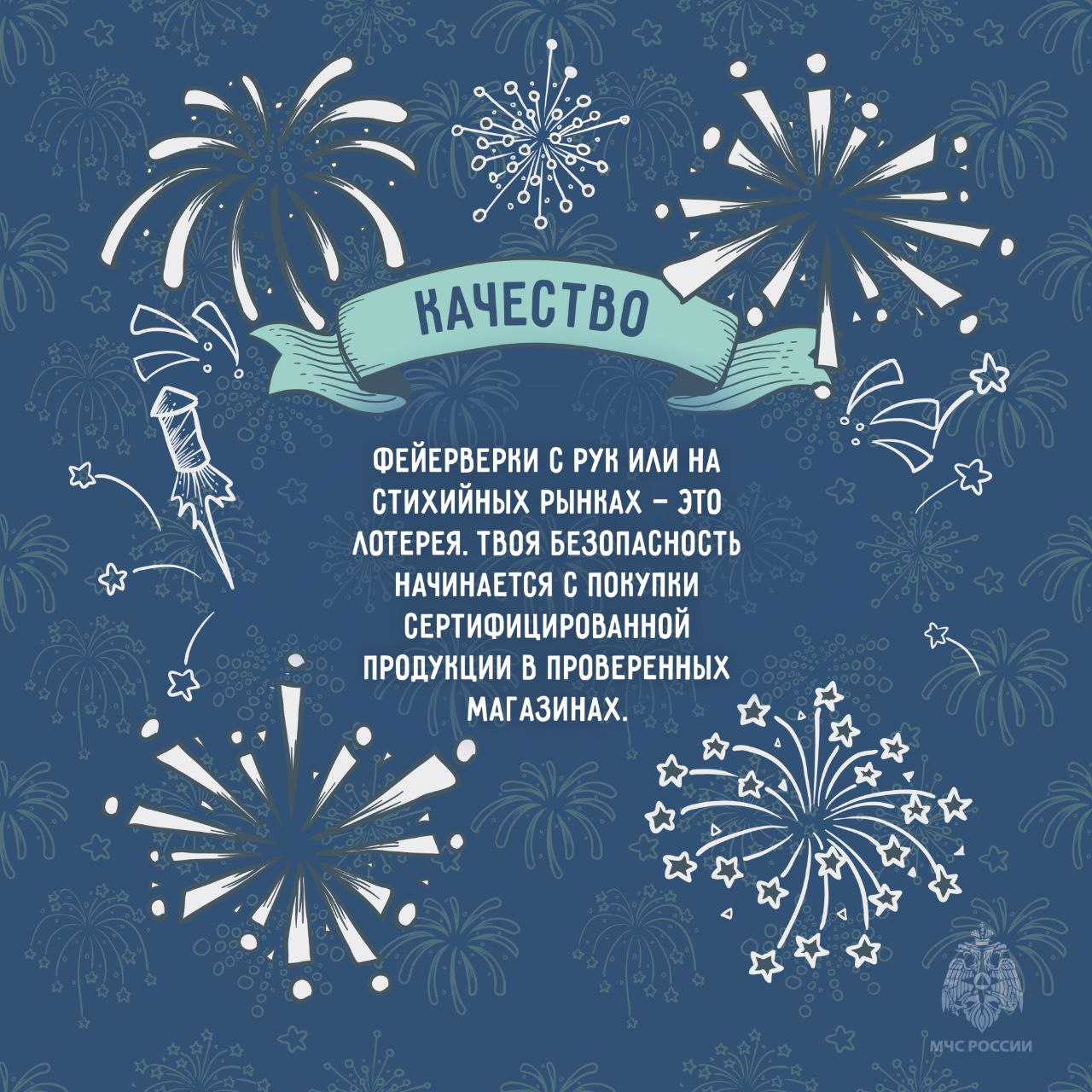 «Подавляющее большинство происшествий случается не из-за брака изделий, а по вине человека, который пренебрег инструкцией. Ваш контроль над ситуацией начинается с покупки сертифицированного изделия и заканчивается только после его безопасной утилизации. Пусть ваша праздничная ночь будет освещена лишь праздничными огнями», - отметил заместитель начальника отдела организации надзорных и профилактических мероприятий #МЧСМурманск Павел Севостьянов.