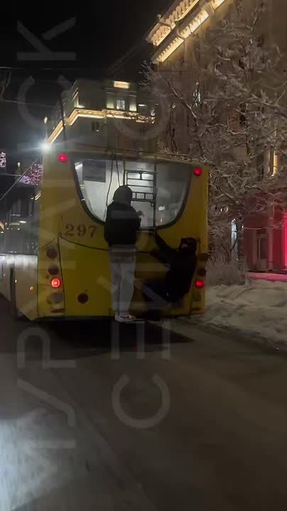 В ходе мониторинга сети «Интернет» был выявлен факт проезда граждан на задней наружной лестнице (площадке) троллейбуса в городе Мурманске.