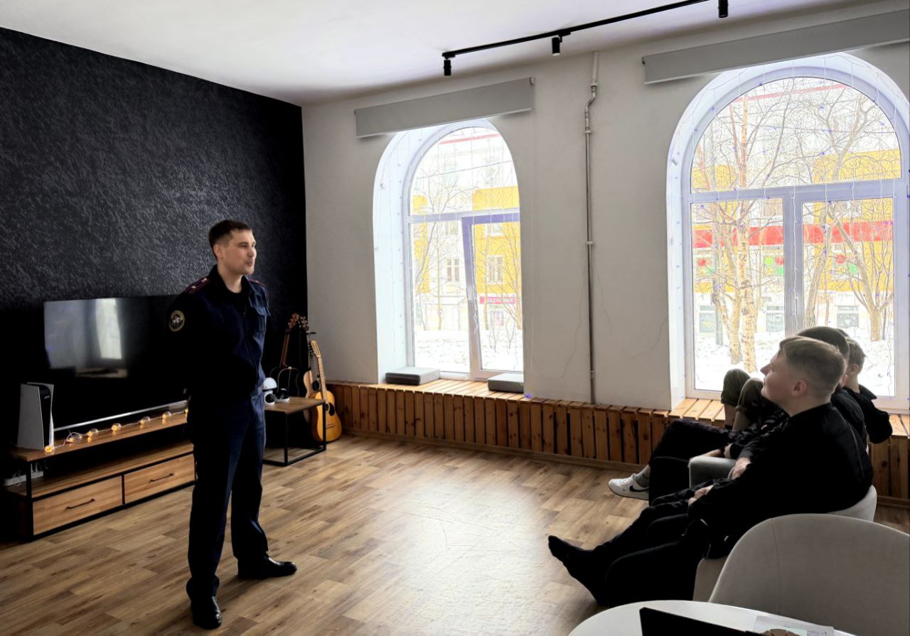 Заместитель руководителя следственного отдела по городу Заполярному Сергей Михеев в рамках межведомственного взаимодействия с органами по делам несовершеннолетних и защите прав несовершеннолетних в целях профилактики правонарушений и преступлений среди несовершеннолетних посетил молодежный центр «Сопки» в поселке Никеле.