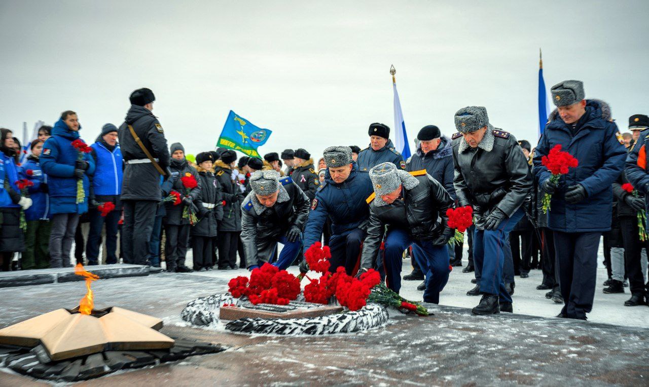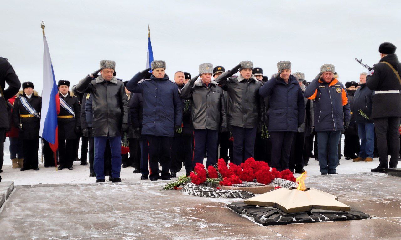 Прокурор Мурманской области Сергей Паволин 23 февраля 2026 года принял участие в торжественном митинге, посвящённом празднованию Дня защитника Отечества, прошедшем у мемориала «Защитникам Советского Заполярья в годы Великой Отечественной войны 1941–1945 гг.» в городе-герое Мурманске