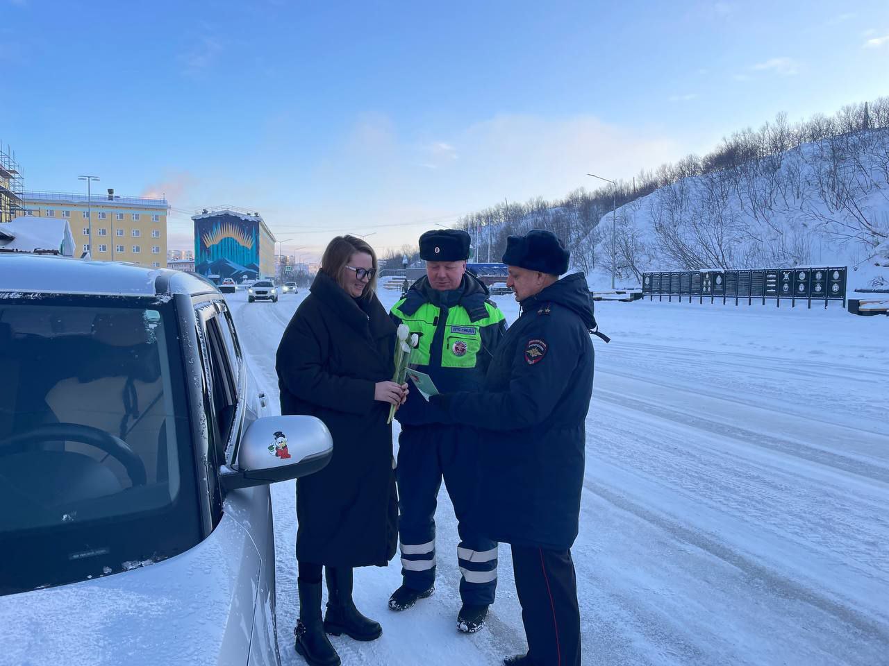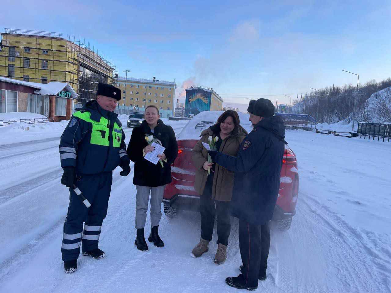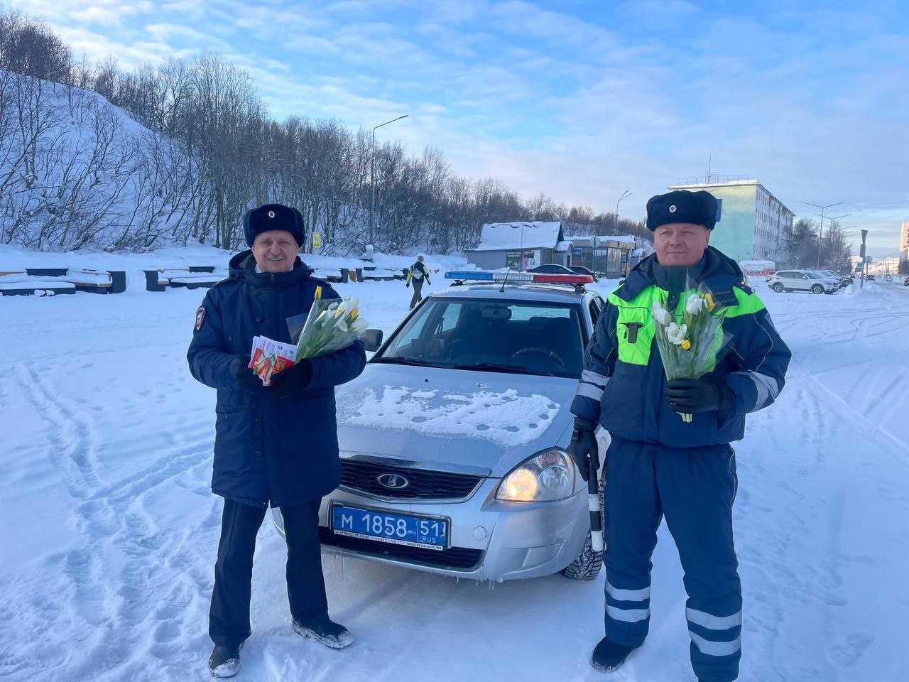 Вчера сотрудники Госавтоинспекции по ЗАТО Заозерск поздравили милых женщин с 8 марта.