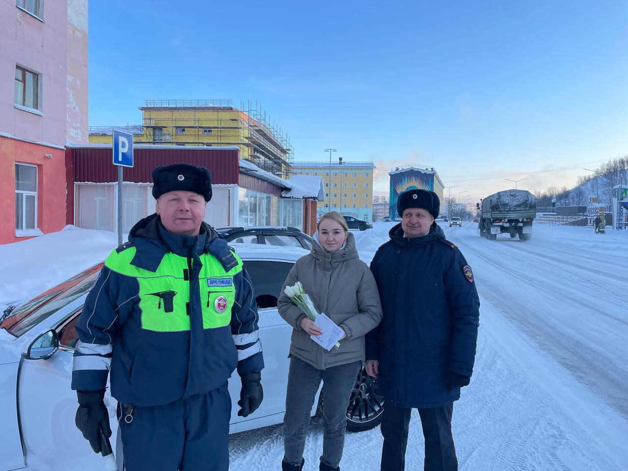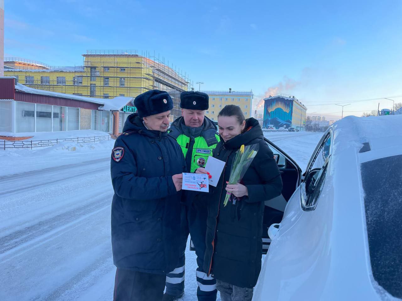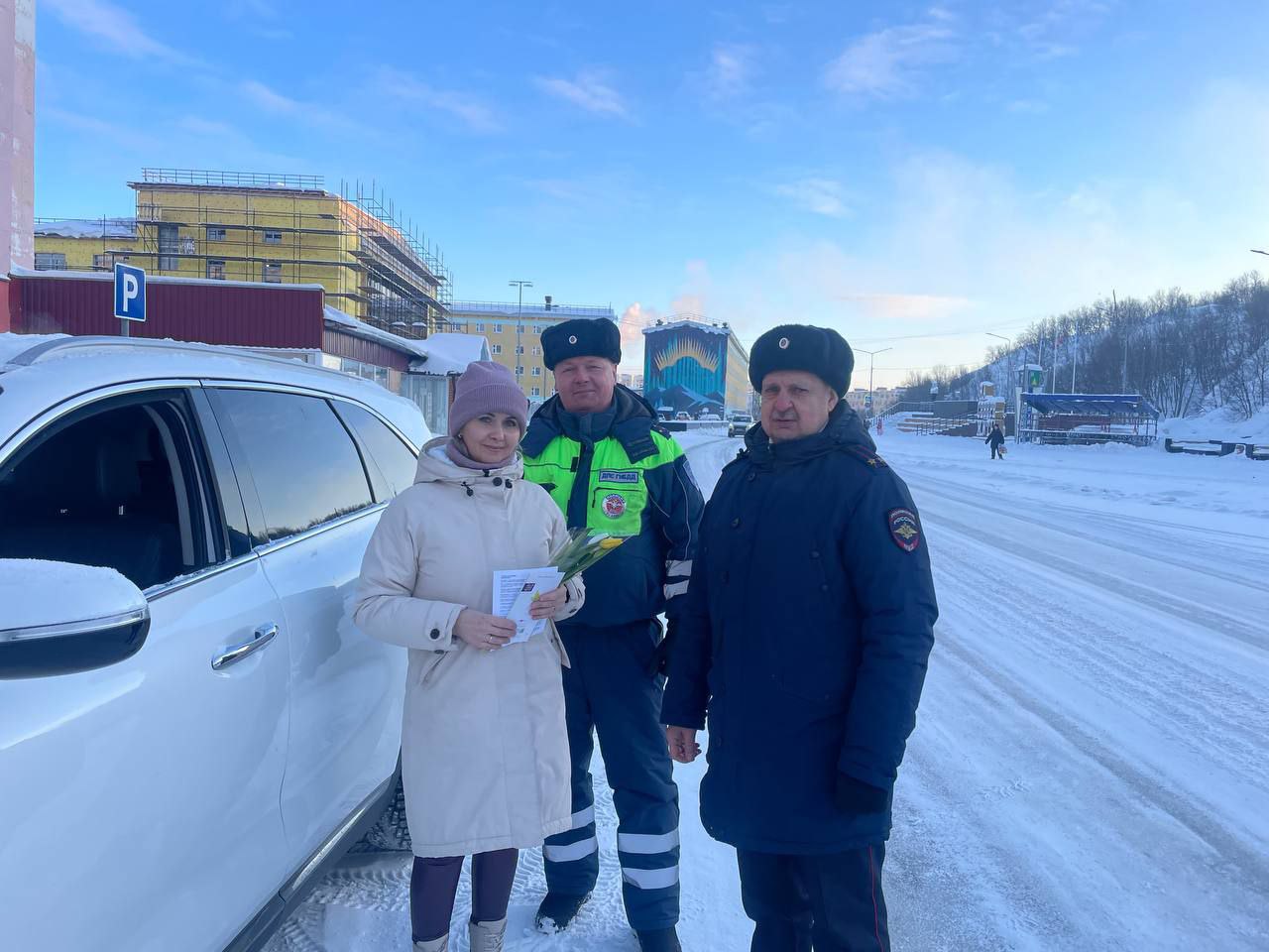 Вчера сотрудники Госавтоинспекции по ЗАТО Заозерск поздравили милых женщин с 8 марта.