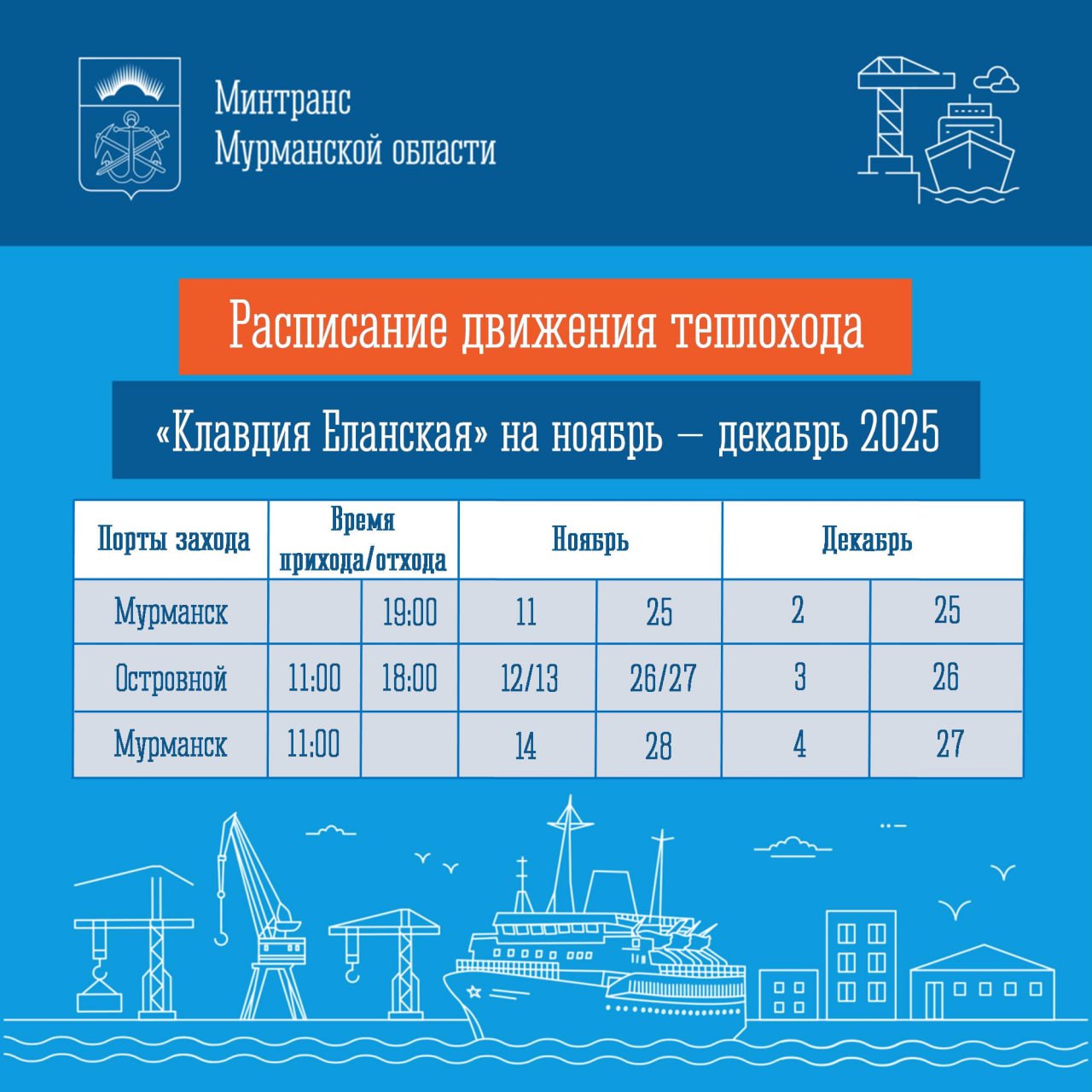 12 3 Минтранс опубликовал расписание теплохода "Клавдия Еланская" на ноябрь и декабрь 2025 года