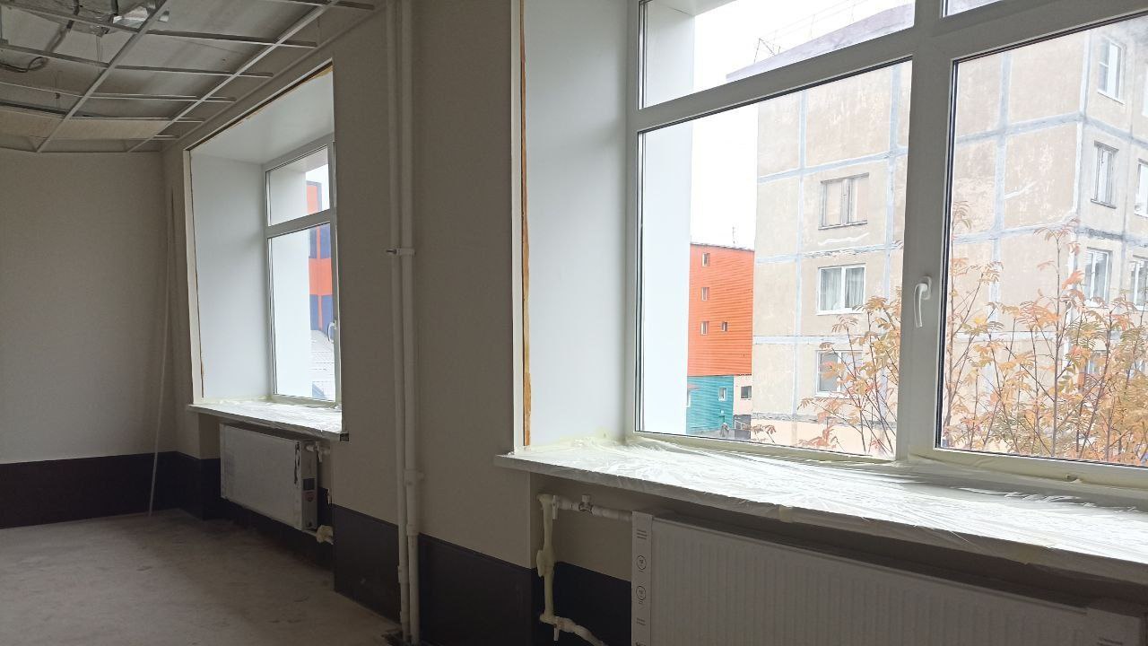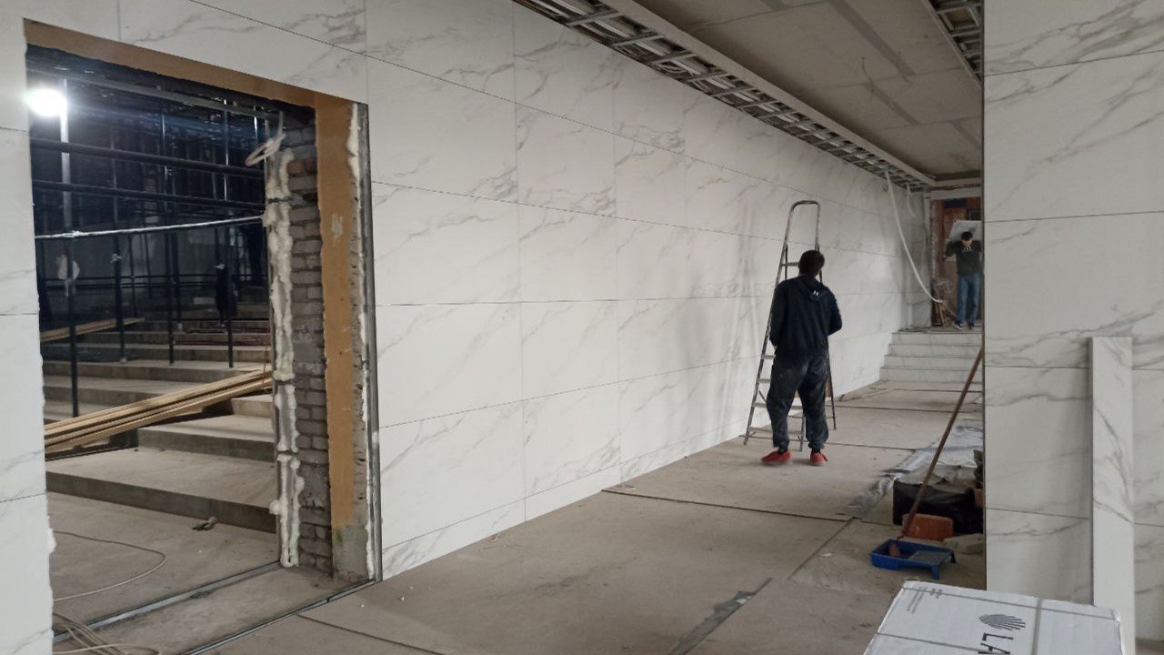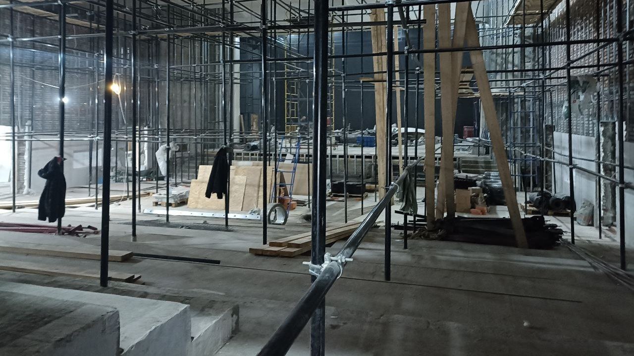 В здании заменили более 50% инженерных сетей. Продолжается обновление отделки полов и потолков. Отдельное внимание при капремонте уделено актовому залу. Сейчас там устанавливают пожарную сигнализацию и звуковое, светотехническое оборудование.