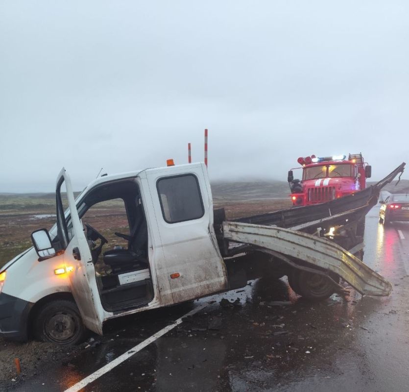 Авария произошла на 18-м километре трассы, ведущей к Териберке. Nissan Pathfinder сначала врезался в дорожную спецтехнику, а затем столкнулся с грузовиком ГАЗель. Удар оказался сильным – двое человек получили травмы и были доставлены в больницу.