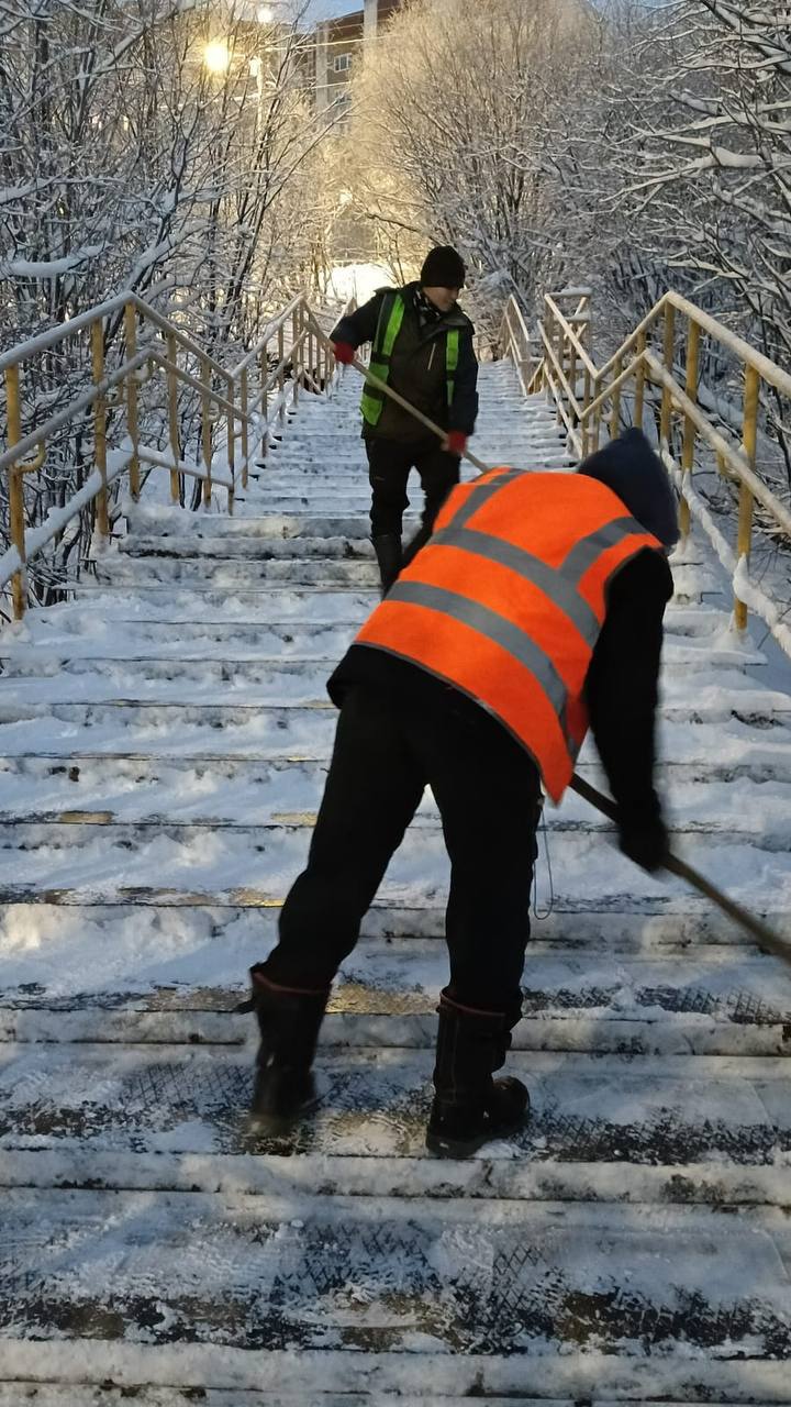 Расчищаются и обрабатываются проезжие части, тротуары, парковки, вывозится снег. Ночью в Мурманске были задействованы 44 единицы техники, утром на смену вышли 69 машин и 142 уборщика.