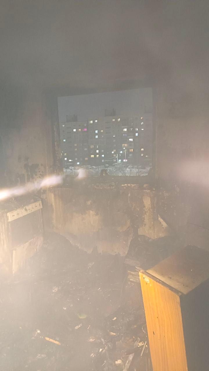 На пятом этаже полностью выгорела квартира, оборудованная под студию звукозаписи и обшитая звукоизоляционными матами. Выгорел тамбур, обуглена входная дверь соседней квартиры. Из дома эвакуировали 29 жильцов, четырем потребовалась госпитализация.