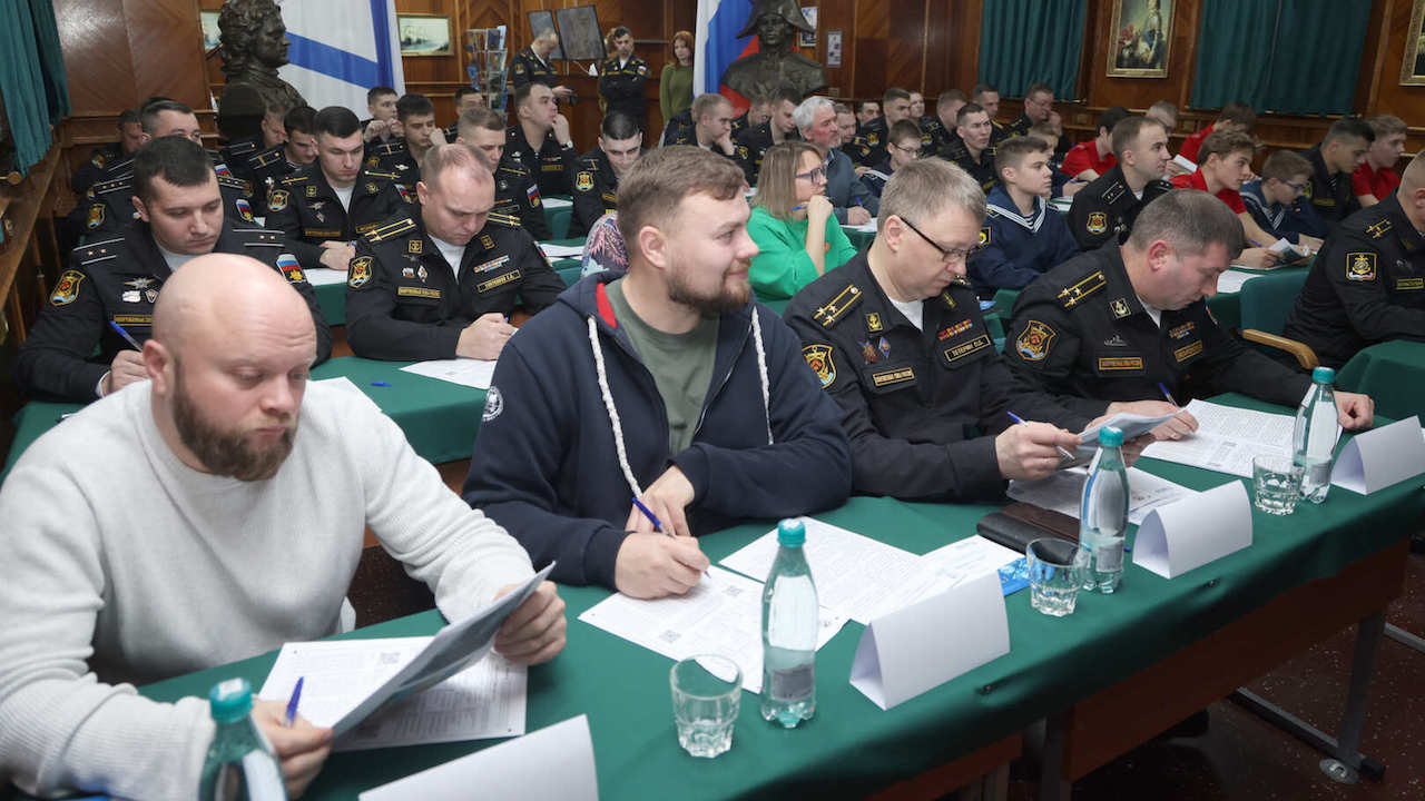 На борту ракетного крейсера "Маршал Устинов" прошло тестирование на знание географических и исторических фактов в рамках ежегодной просветительской акции "Географический диктант", проводимой под эгидой Всероссийской общественной организации "Русское географическое общество". Всего на Северном флоте было подготовлено 33 площадки, где военнослужащие и члены их семей, юнармейцы и учащиеся местных школ, а также нахимовцы и кадеты могли проверить свои знания в области данной науки.