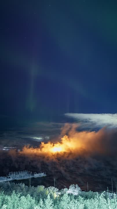 В морозы над Кольским заливом стелется пар, создавая иллюзию, будто вода парит в воздухе. Всё благодаря теплому течению Гольфстрим, которое не дает заливу замерзнуть.
