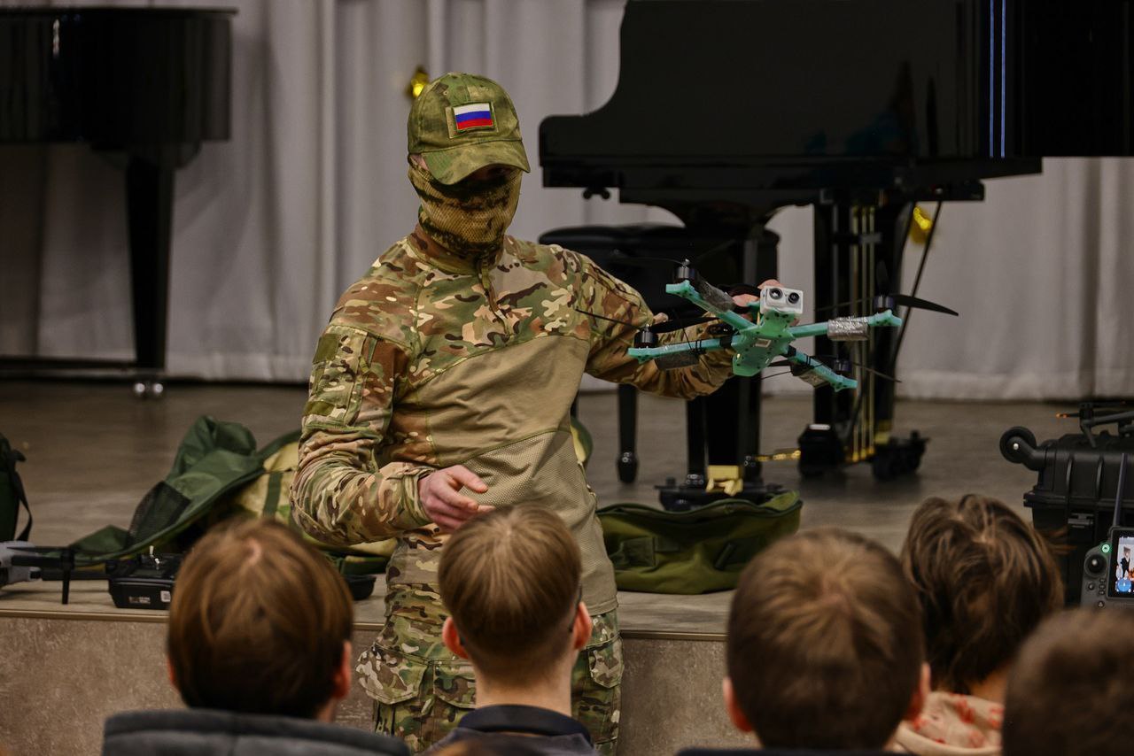 Ветераны специальной военной операции рассказали студентам Полярного о современных военных беспилотниках и показали различные образцы техники, включая квадрокоптеры и FPV-дроны.