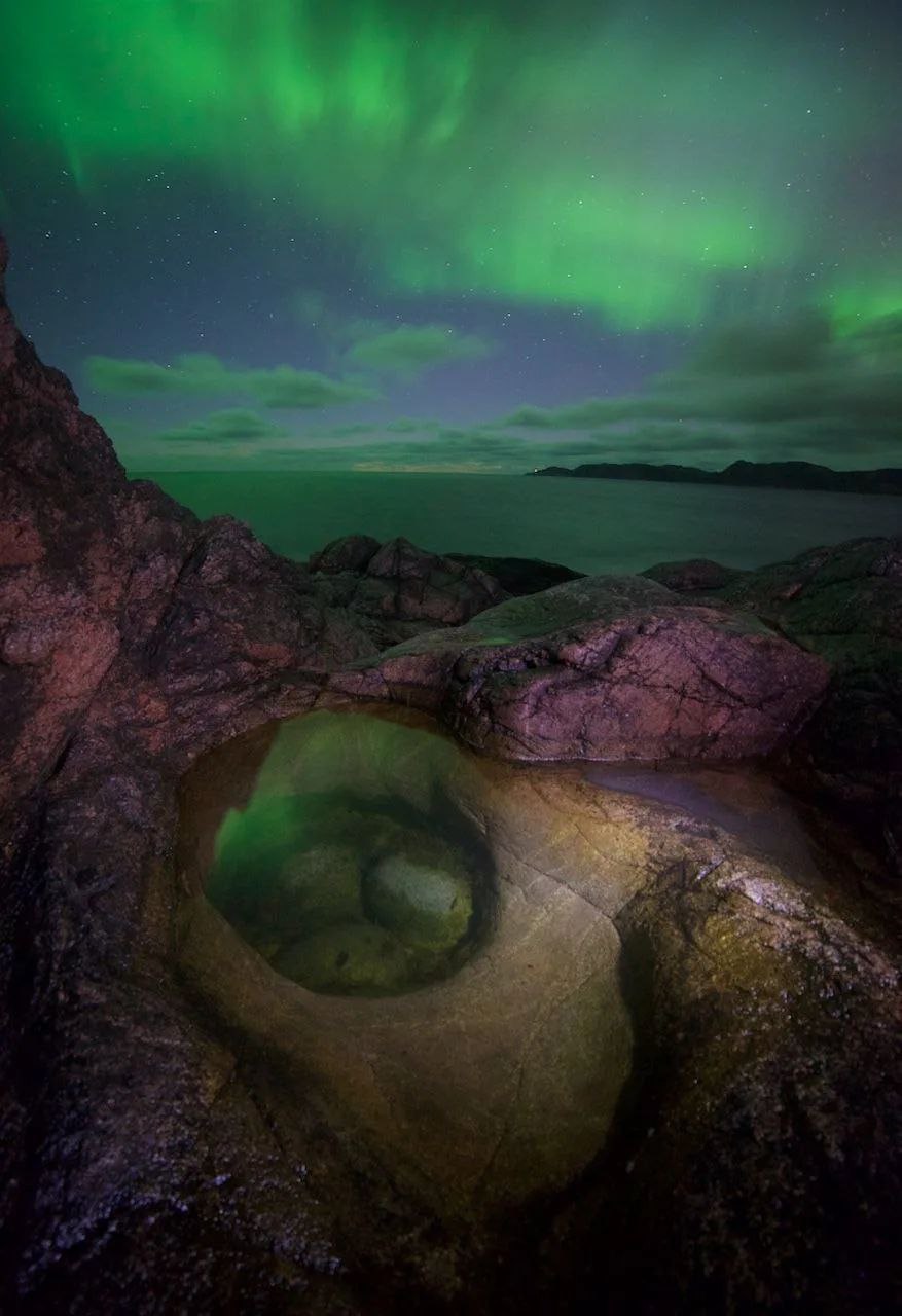 "Гнездо дракона" — это каменный грот в природном парке Териберка на побережье Баренцева моря, недалеко от Мурманска (Россия).