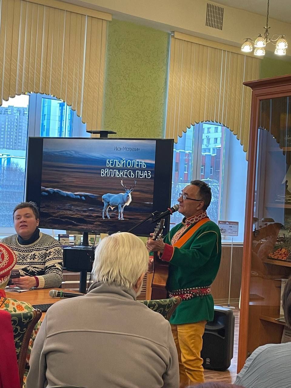 Также представили детскую сказку-раскраску Сымман и чахкли, созданную по мотивам старинной легенды. Завершил вечер концерт саамского барда Ивана Матрехина, который исполнил авторские песни и презентовал переизданный сборник Белый олень.