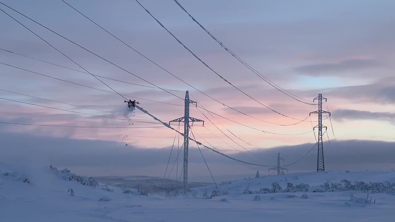 БПЛА "Паук" очищает ЛЭП от наледи в Мурманской области