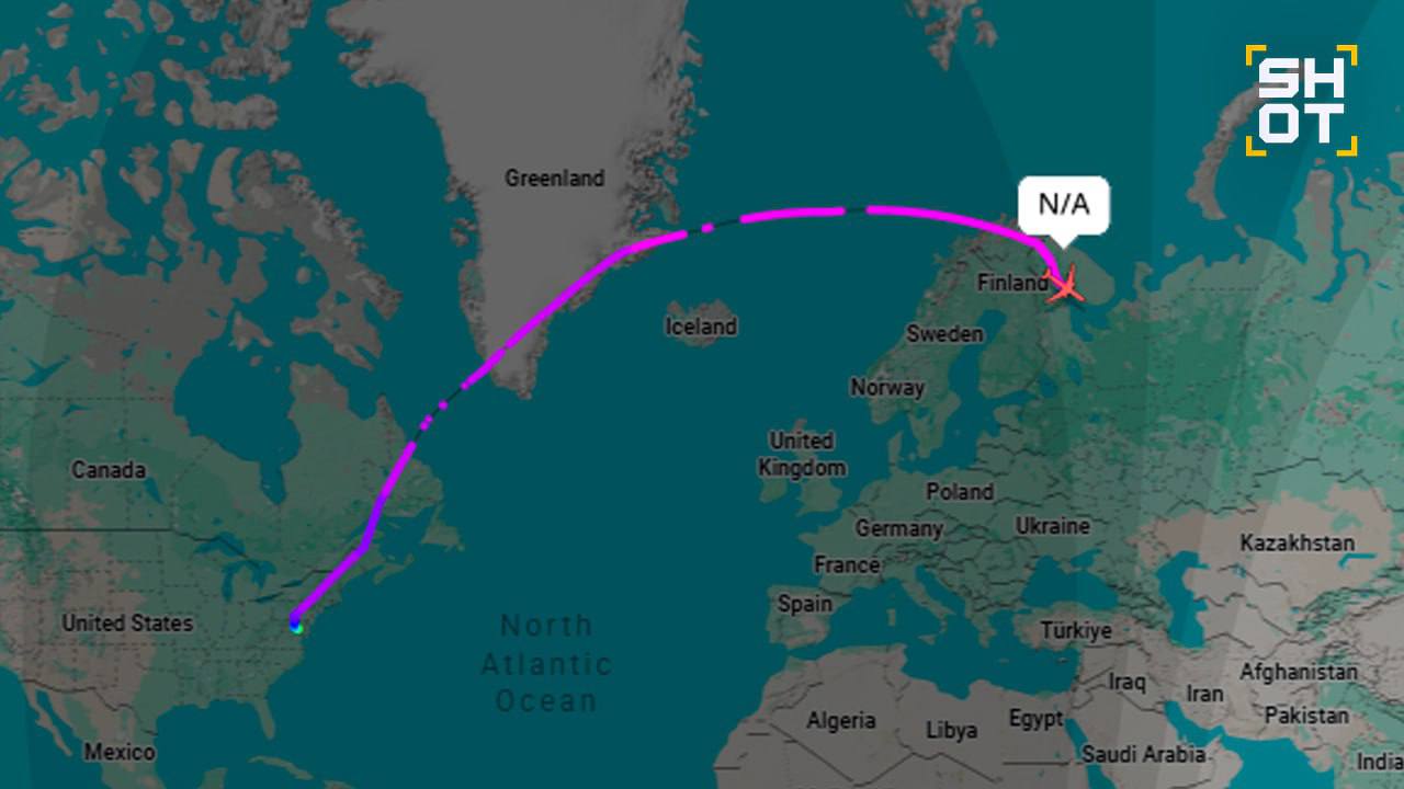 ▪️Лайнер вылетел с американской авиабазы, прошёл через Гренландию, Норвегию и Финляндию, после чего пересёк границу в районе Мурманской области.