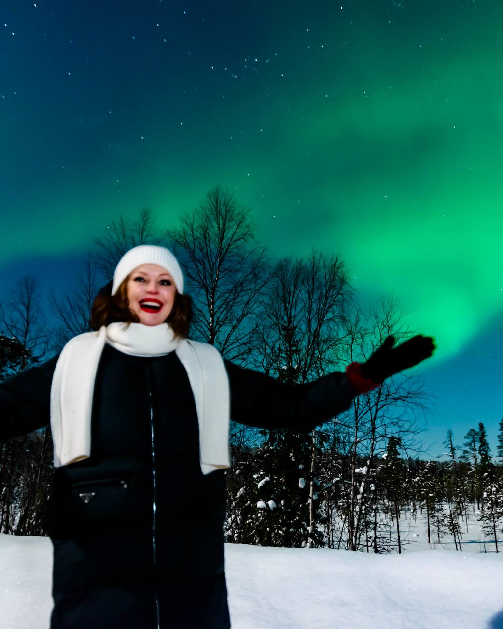После одного из спектаклей она вместе с командой отправилась за город на поиски северного сияния. Мороз, хрустящий снег, заснеженные ели и переливающееся над головой сияние произвели на Безрукову неизгладимое впечатление.