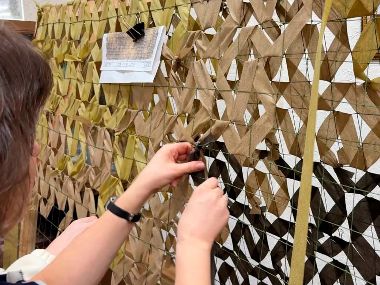 При создании сетей волонтеры строго соблюдают рекомендации бойцов по цветовой гамме, чтобы маскировка была максимально эффективной в условиях местности.