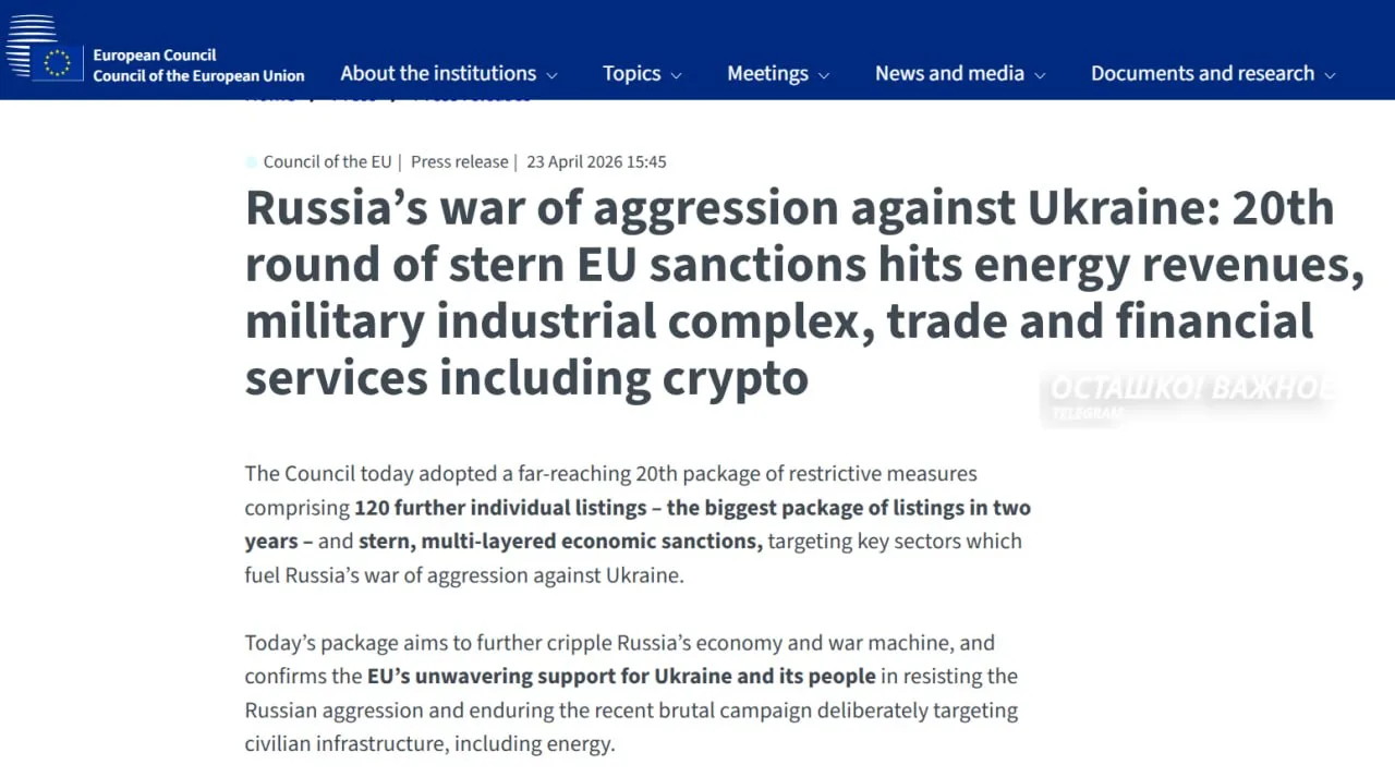 20 пакет санкций: что ещё европейские ястребы запретили России и своим