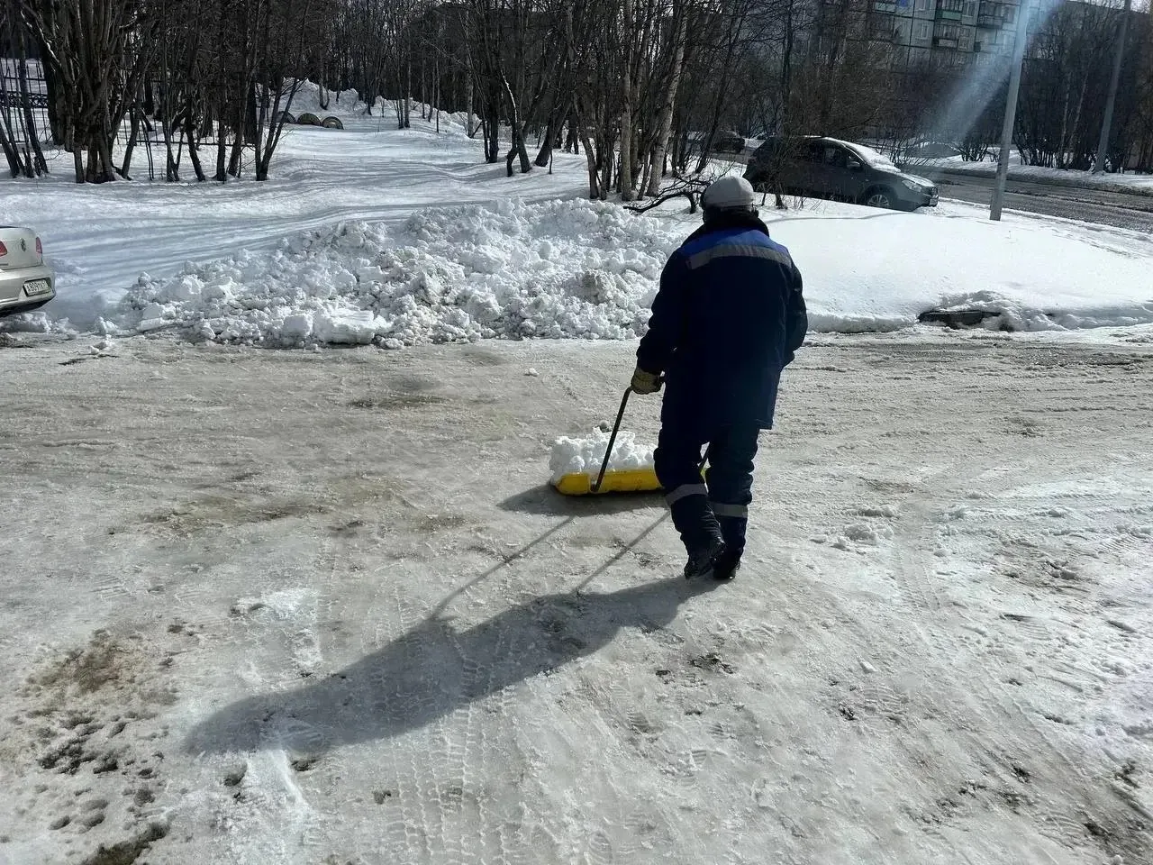 Выполняется расчистка тротуаров, вывоз снега с междворовых проездов, очистка пешеходных зон.