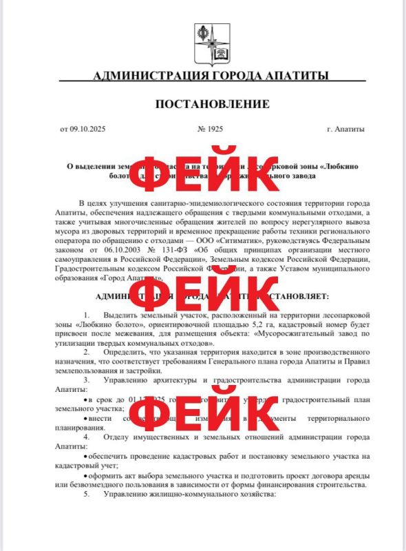 В социальных сетях распространяется поддельные документы о якобы запланированном строительстве мусоросжигательного завода в лесопарковой зоне «Любкино болото» в Апатитах.Это – ФЕЙК! Распространение такой информации – один из методов вражеского...