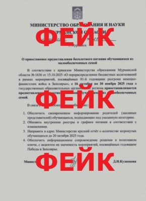 Внимание: фейковые приказы об отмене школьного питания и перераспределении бюджетных средств В социальных сетях распространяются поддельные приказы министерства образования Мурманской области. В документах якобы содержится информация:· о...