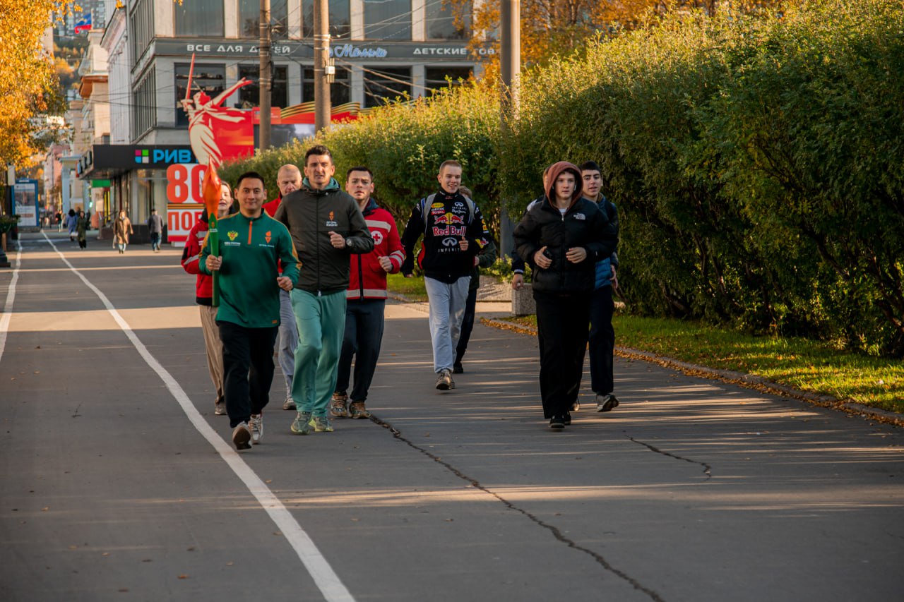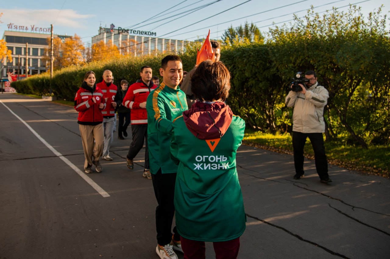 10 северян пронесли факел по центру города-героя. Возглавил эстафету Артем Алискеров — амбассадор донорства костного мозга, который сам победил рак крови.
