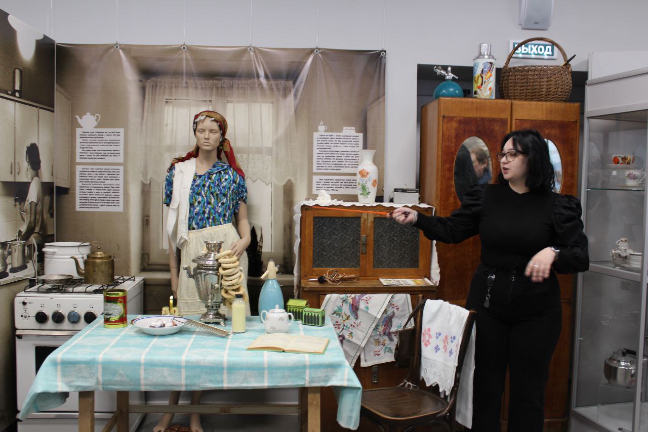 Посетителей встречают интерьеры кухонь и столовых тех лет, витрины с упаковками от рыбных пельменей и консервов, а также меню из мурманских ресторанов прошлого.