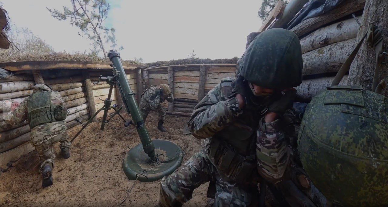 Российские арктические мотострелки весьма убедительно играют свои роли на левом берегу Днепра