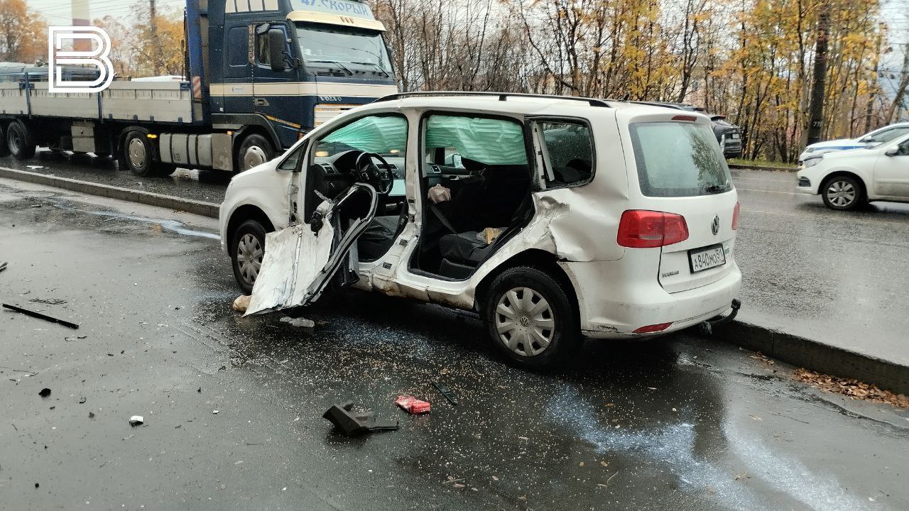 По данным Госавтоинспекции, около 11:07 в районе дома 23/1 на улице Шмидта водитель автомобиля "Вольво" столкнулся с машиной "Черри", которая по инерции врезалась в "Фольксваген". После этого "Вольво" допустил столкновение еще с тремя транспортными средствами. В результате аварии один из водителей получил травмы.