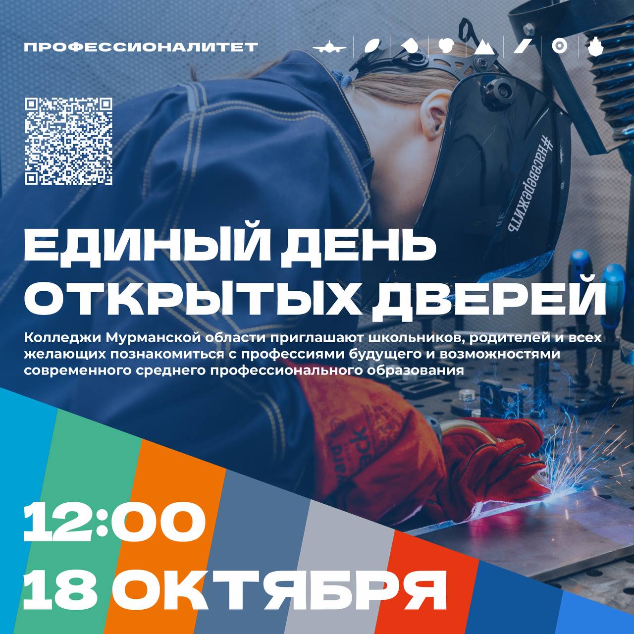18 октября колледжи Кольского Заполярья приглашают на Единый день открытых дверей проекта «Профессионалитет»