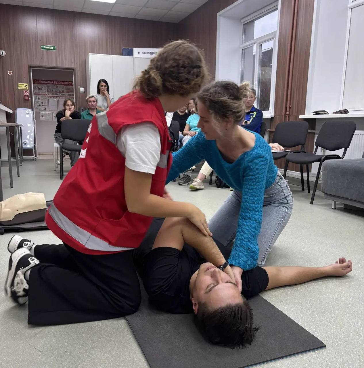 В гимназии № 10 прошел практический курс по первой помощи для старшеклассников. Ребята учились действовать в экстренных ситуациях – при остановке дыхания, кровотечениях и травмах. Инструкторами выступили медики и волонтеры, а занятие провел директор медколледжа Андрей Савенков.