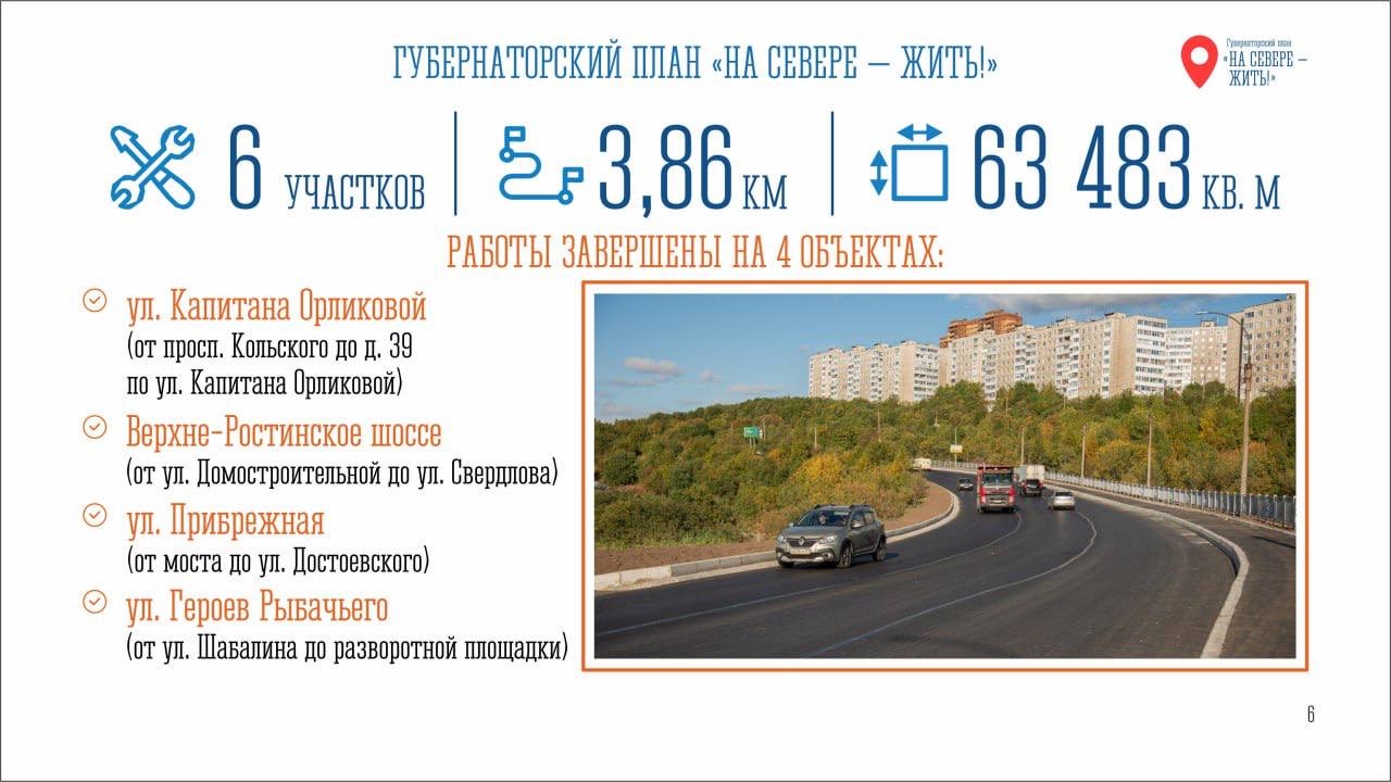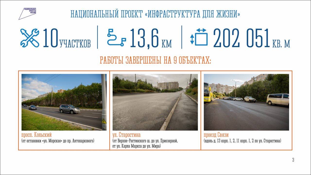 В этом сезоне в Мурманске по национальному проекту «Инфраструктура для жизни» и губернаторскому плану «На Севере – жить!» активно ведутся работы по ремонту автомобильных дорог и тротуаров. Всего запланирован ремонт 16 участков общей протяжённостью 16,8 км и площадью 317 768 кв. м.
