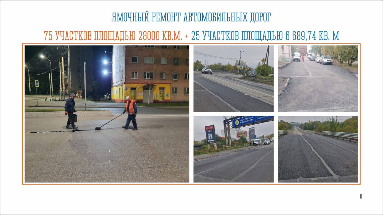Кроме того силами ММБУ «Управление дорожного хозяйства» выполнен ямочный ремонт на 100 участках общей площадью 36,7 тысячи кв. м.