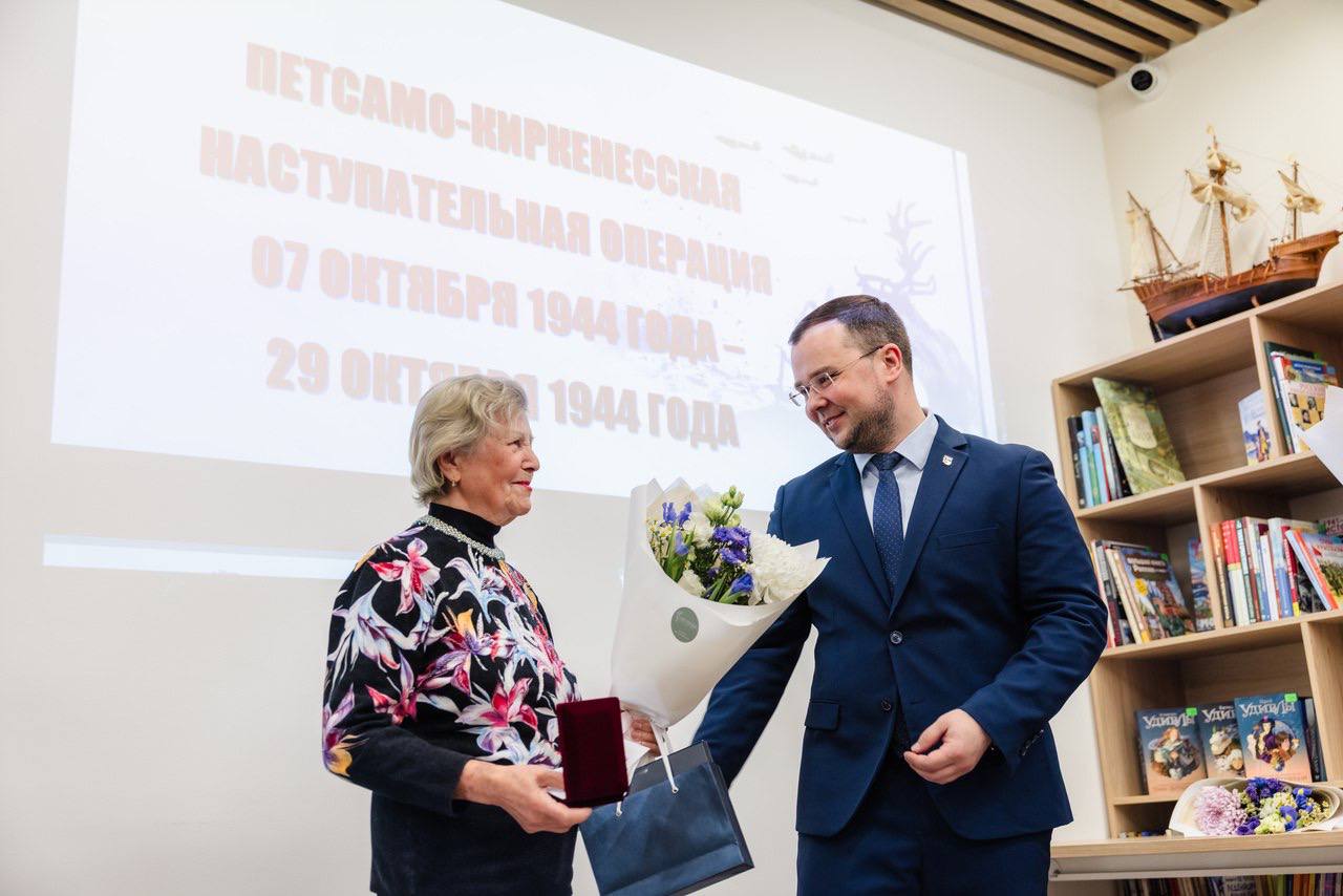 На торжественном мероприятии в библиотеке №4 имени Н.Н. Блинова и.о. главы города Иван Лебедев поблагодарил детей войны за стойкость и жизненный пример, вручил им медали, цветы и подарки. После этого для участников провели викторину "Петсамо: время и память", посвященную событиям Петсамо-Киркенесской операции.