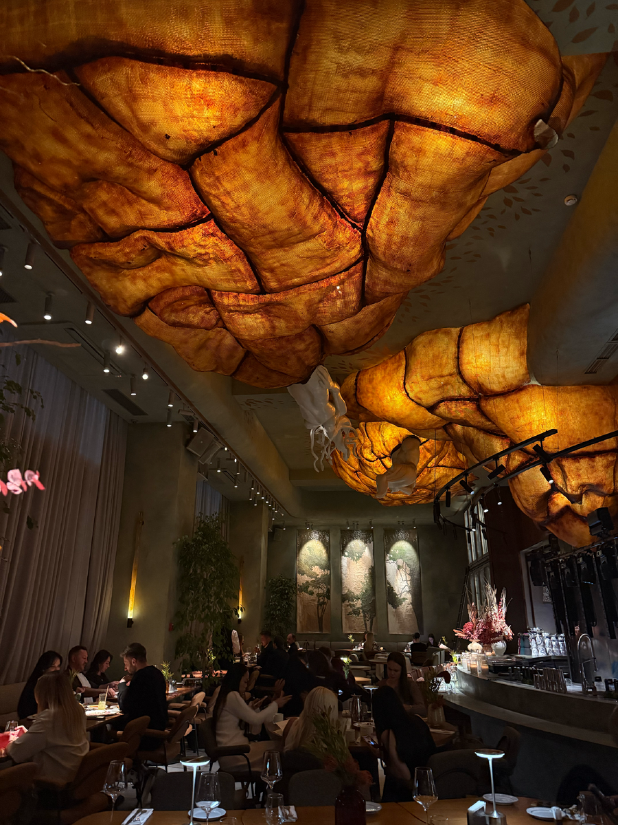 Phantom очаровывает своим масштабом и эстетикой. Центральный зал украшает огромная инсталляция, представляющая собой символ огня, а мягкий, точечный свет создает уютное настроение. Это заведение подходит не только для торжеств, но и для романтических ужинов. Открытая кухня позволяет гостям наблюдать за процессом приготовления, включая чудесные лепешки, которые обязательно привлекут внимание.