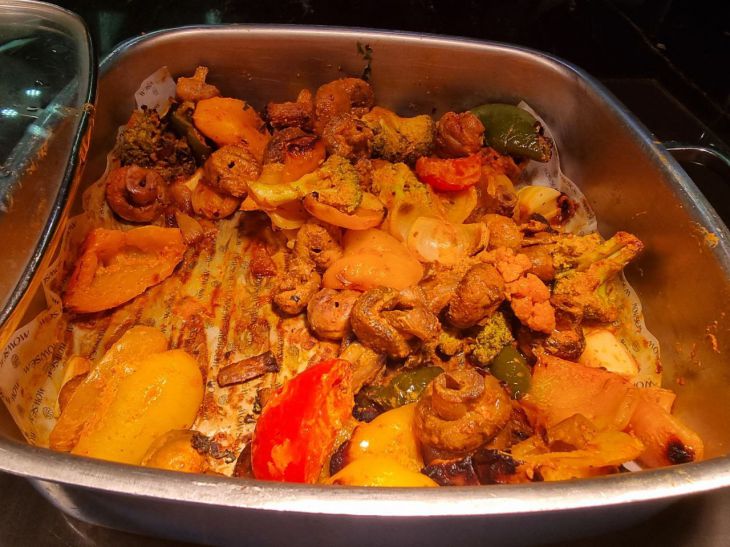 Запекайте в духовке под крышкой или фольгой с небольшим количеством бульона или воды до мягкости овощей.