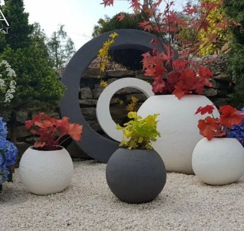 Любой желающий может попробовать свои силы в создании оригинальных фигурок, цветочных горшков или декоративных грибов. Для начала подойдет простое — например, милые цилиндрические или круглые горшки. Для создания грибов потребуется резиновый мяч и пластик: одна половинка мяча заливается раствором, обращая внимание на пропорции и крепления.