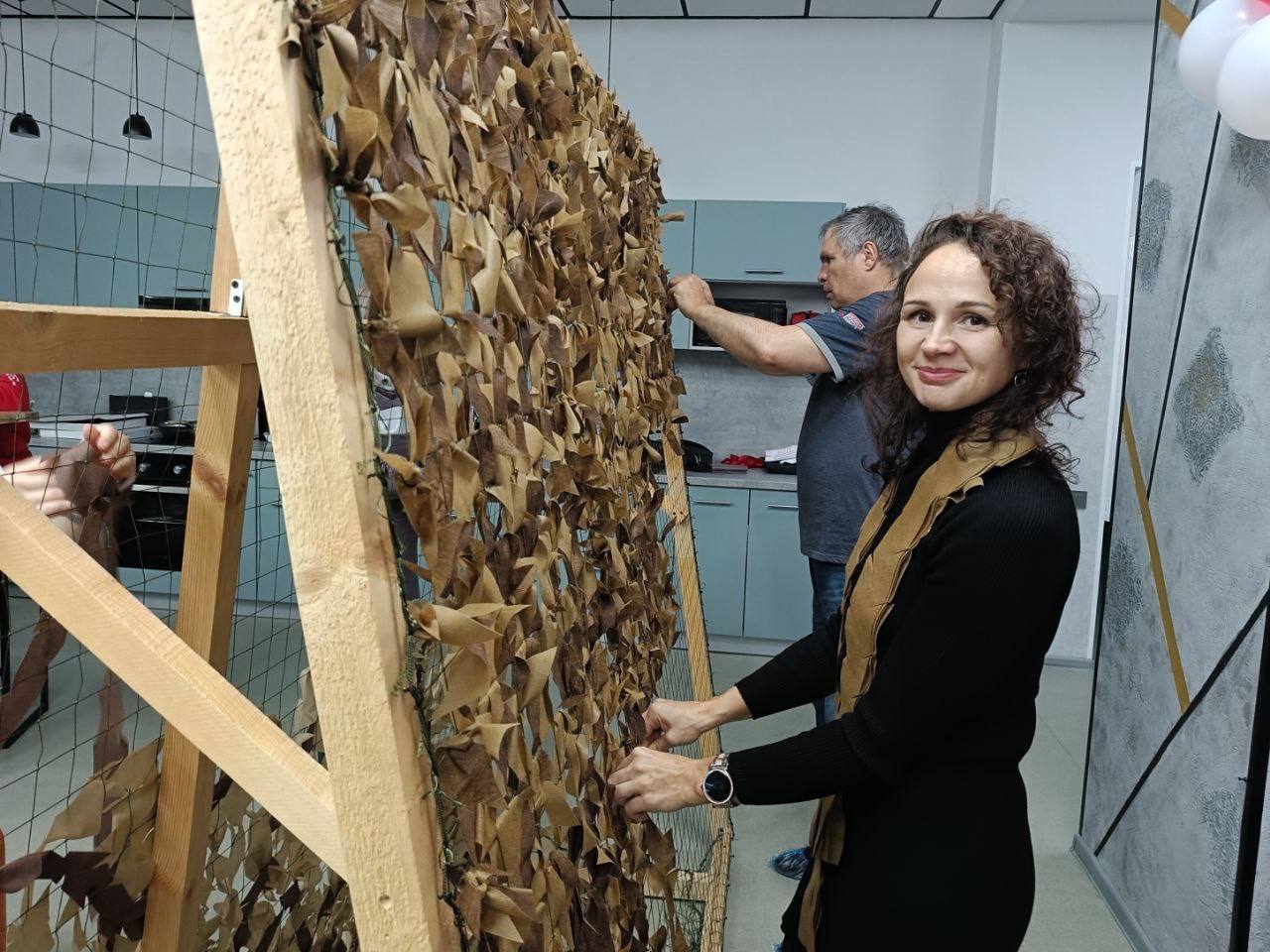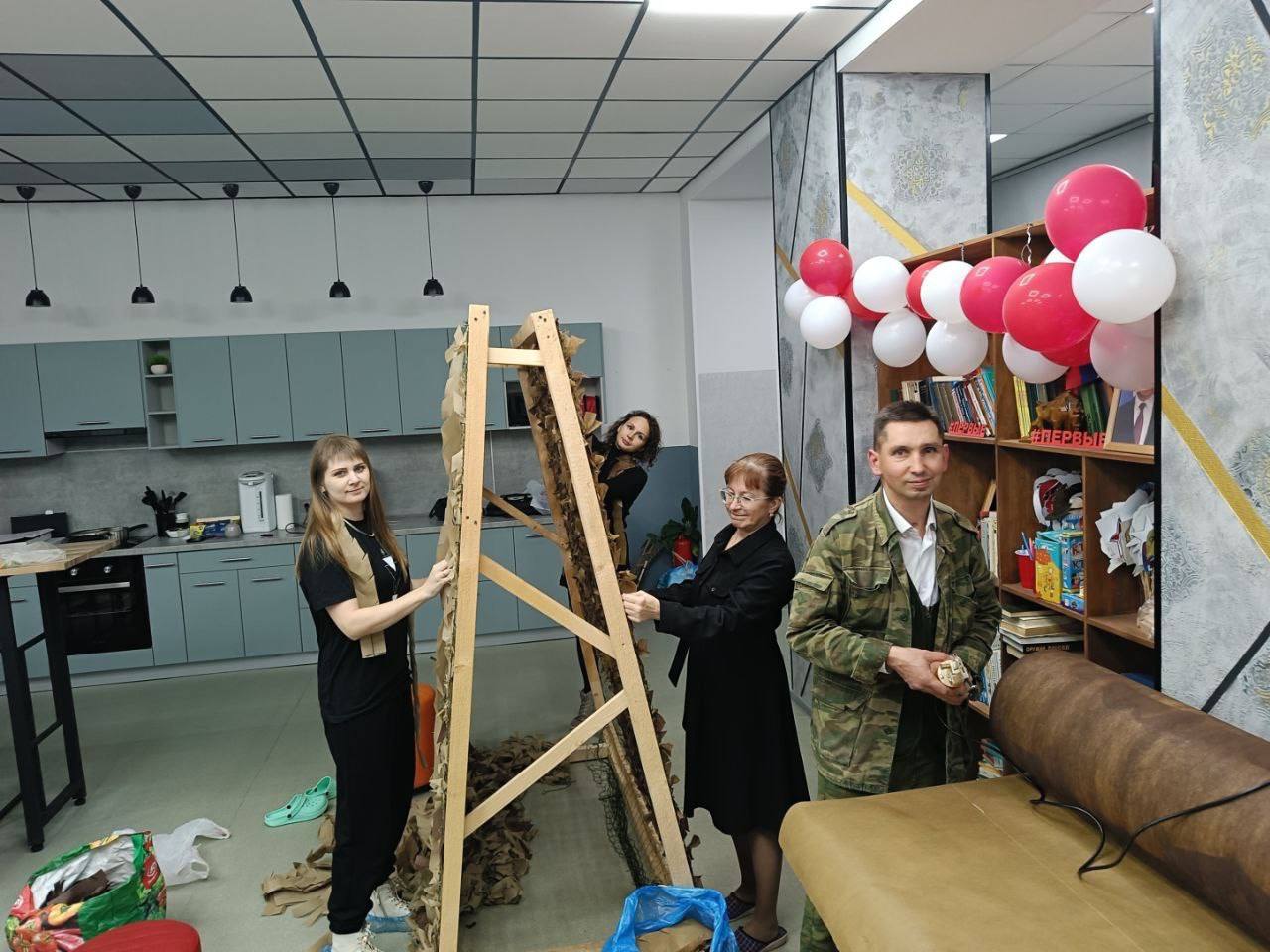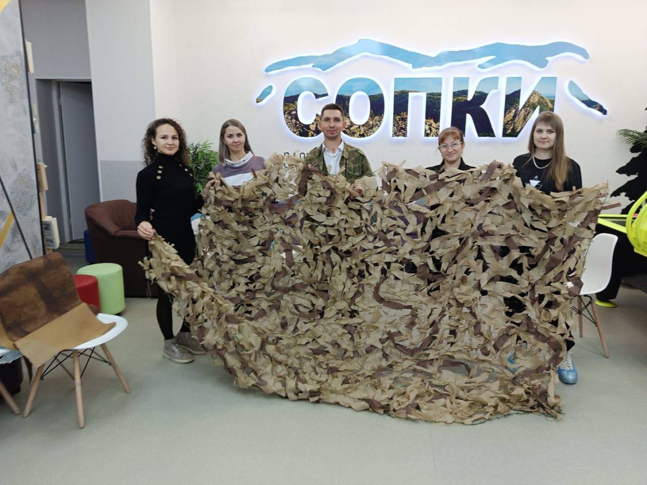 В молодежном пространстве «Сонки» участники движения «Тепло Севера» изготовили маскировочные сети и талисманы для военнослужащих. За один вечер команда сплела две сети в осенней палитре и создала около 20 талисманов ручной работы – символов организации.