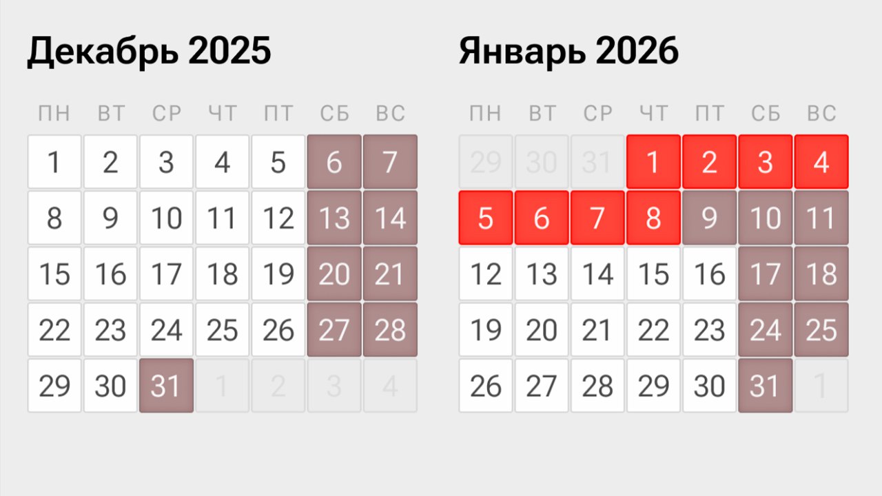 Об этом сообщили в "РИА Новости" со ссылкой на члена комитета Госдумы по труду, социальной политике и делам ветеранов Светлану Бессараб. Праздники продлятся 12 дней: с 31 декабря 2025-го по 11 января 2026 года включительно.