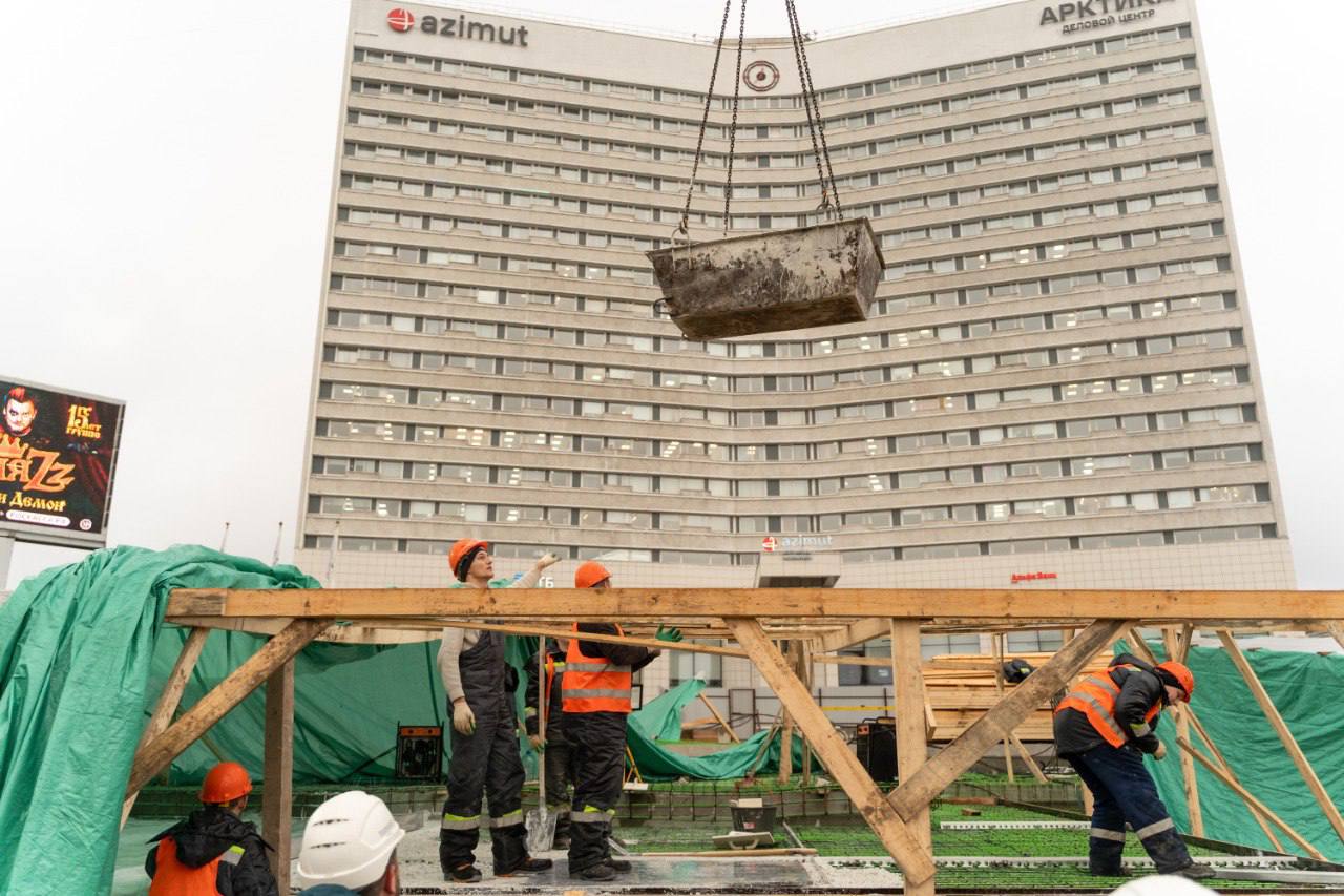 В Мурманске на Пяти Углах начали укладку архитектурного бетона