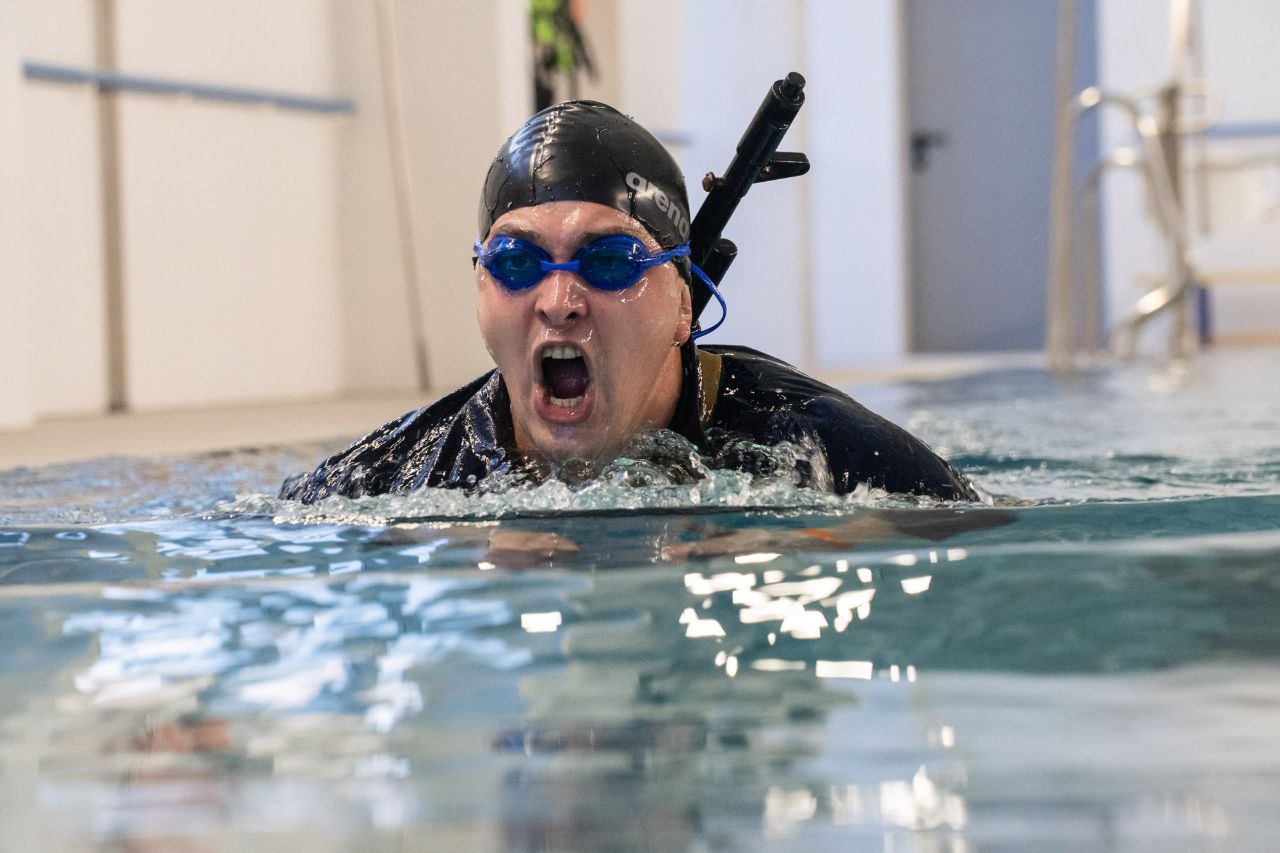 Для получения первого спортивного разряда было необходимо проплыть 100 метров в военной форме одежды с автоматом не более чем за 2 минуты 20 секунд.