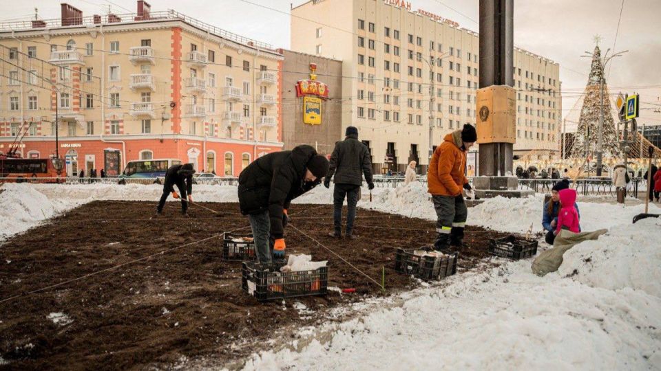 У стелы "Город-герой Мурманск", на проспекте Ленина, 67, вырастят 9 000 цветов.