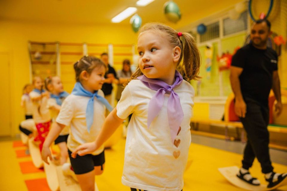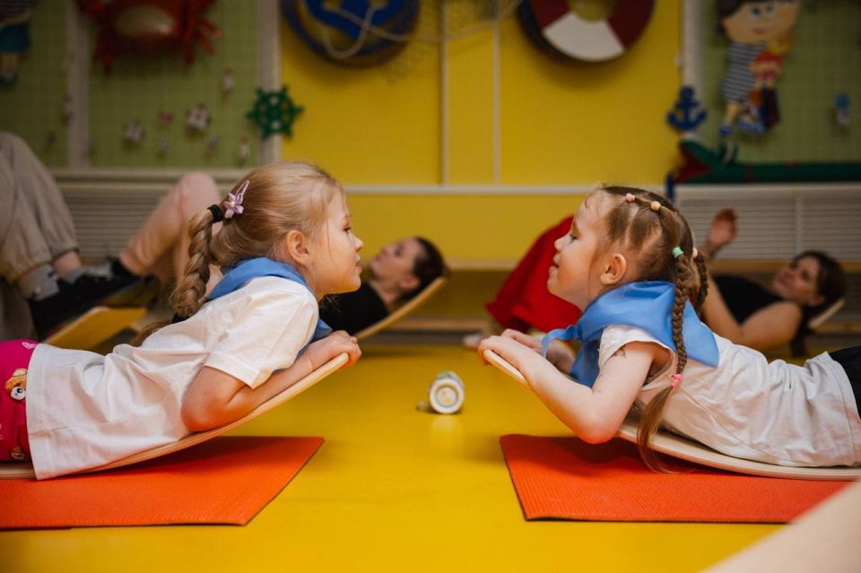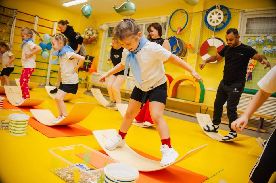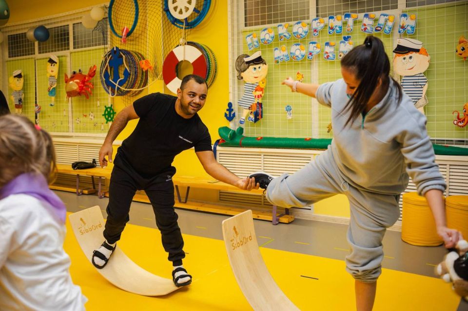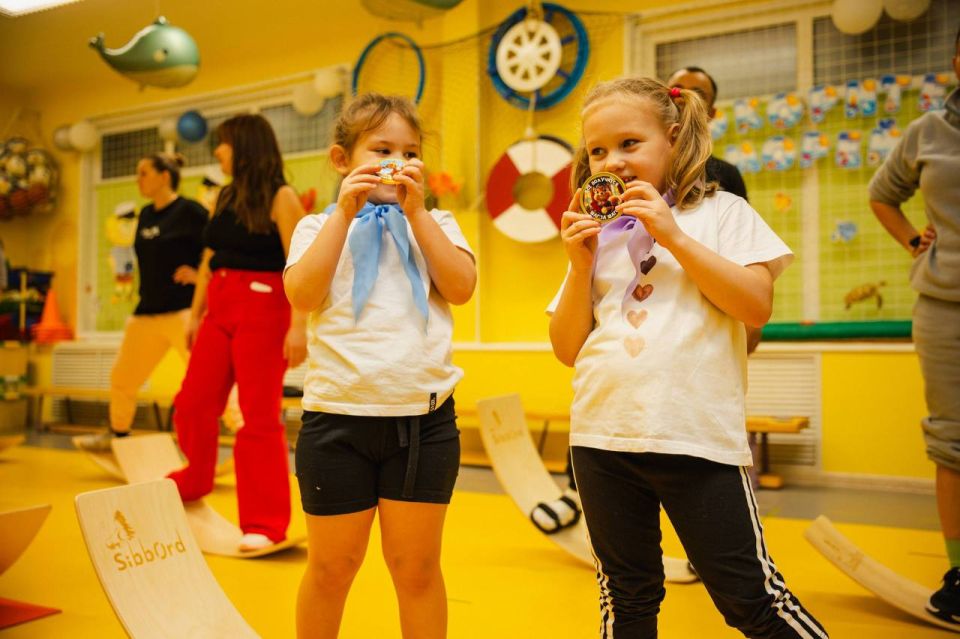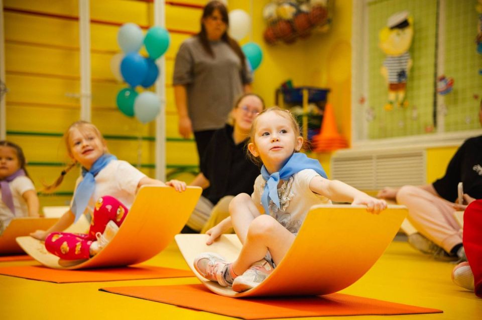 Ребята из физкультурно-спортивного кружка «Юные сиббордисты» балансировали на специальных тренировочных снарядах, будто на кораблях в шторм. Для наибольшей пользы дошкольников в программу занятия были включены элементы нейроупражнений, направленные на развитие координации и мышления. Поддержать спортсменов пришли самые важные в их жизни люди – родители.