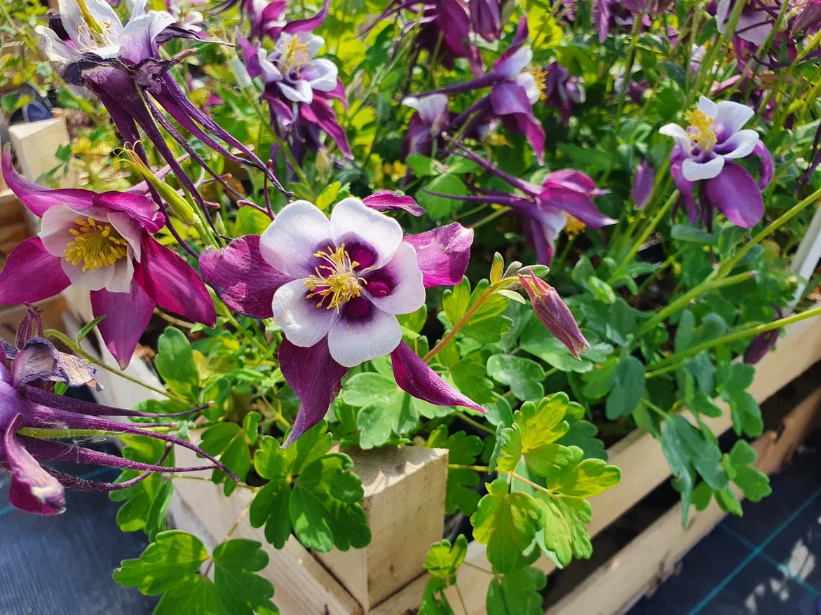 - Аквилегия: изящные «колокольчики» с резной листвой, которые отлично приживаются и активно самосеются. Эти цветы любят полутень и влажную почву, но легко адаптируются к разным условиям.