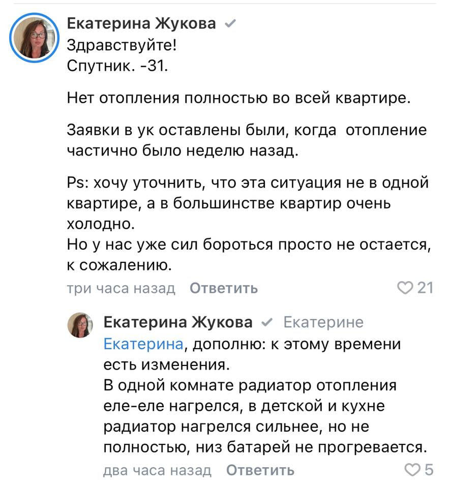 Тем временем жители жалуются в соцсетях: при уличной температуре минус 30, в квартирах не выше 10-12 градусов. Губернатор Андрей Чибис поручил проверить защиту электросетей и выяснить, почему система не выдержала отключения.