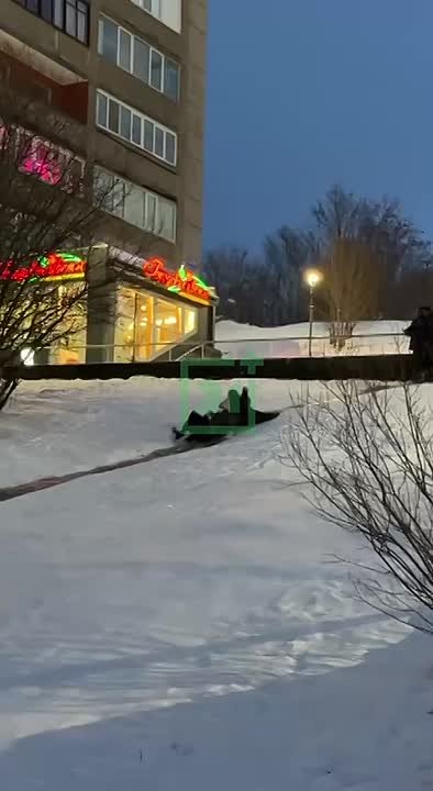 В Мурманске туристы из Китая и Индии выбрали необычное зимнее развлечение – катание с горки в центре города, рядом с филармонией.