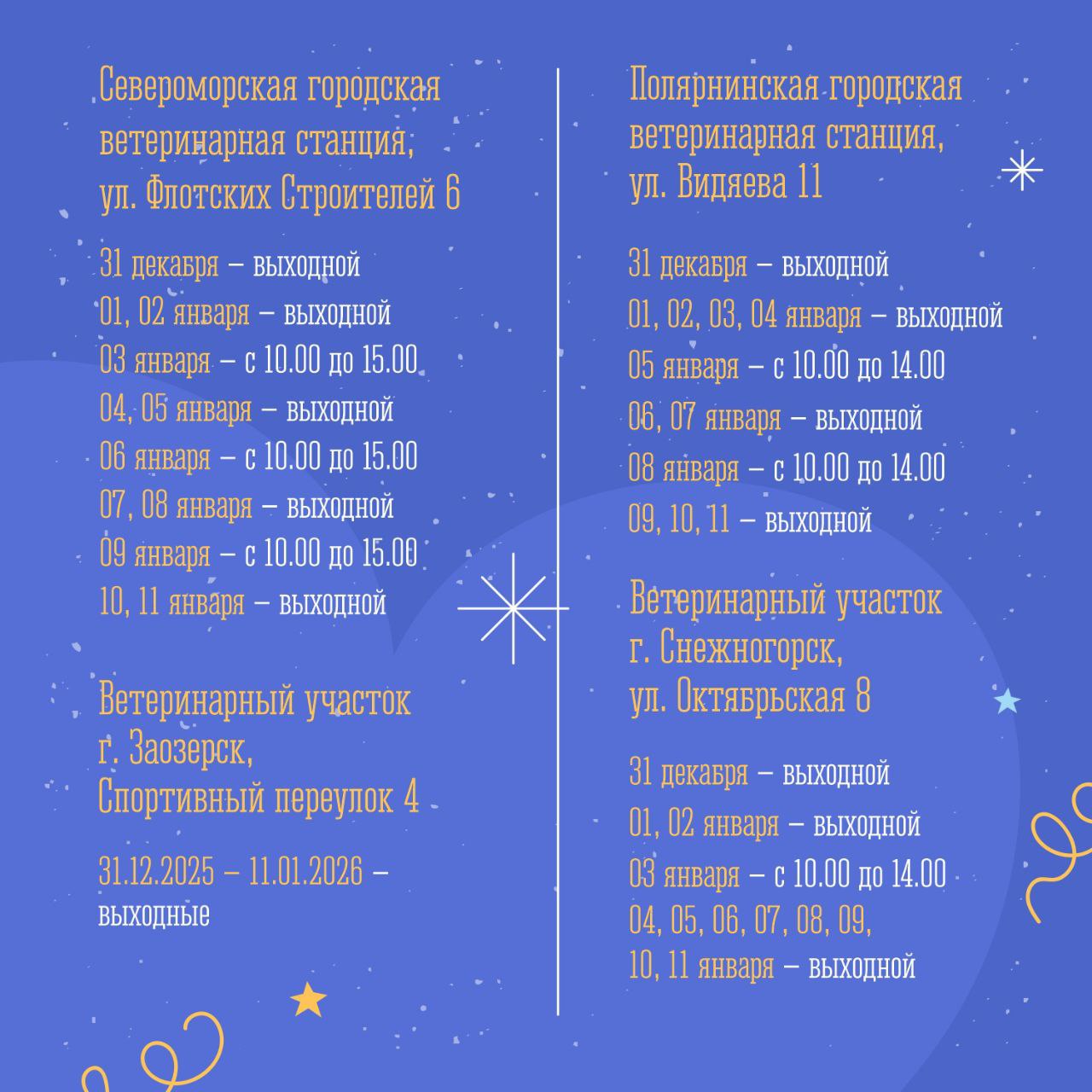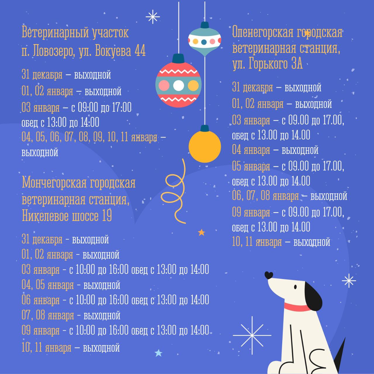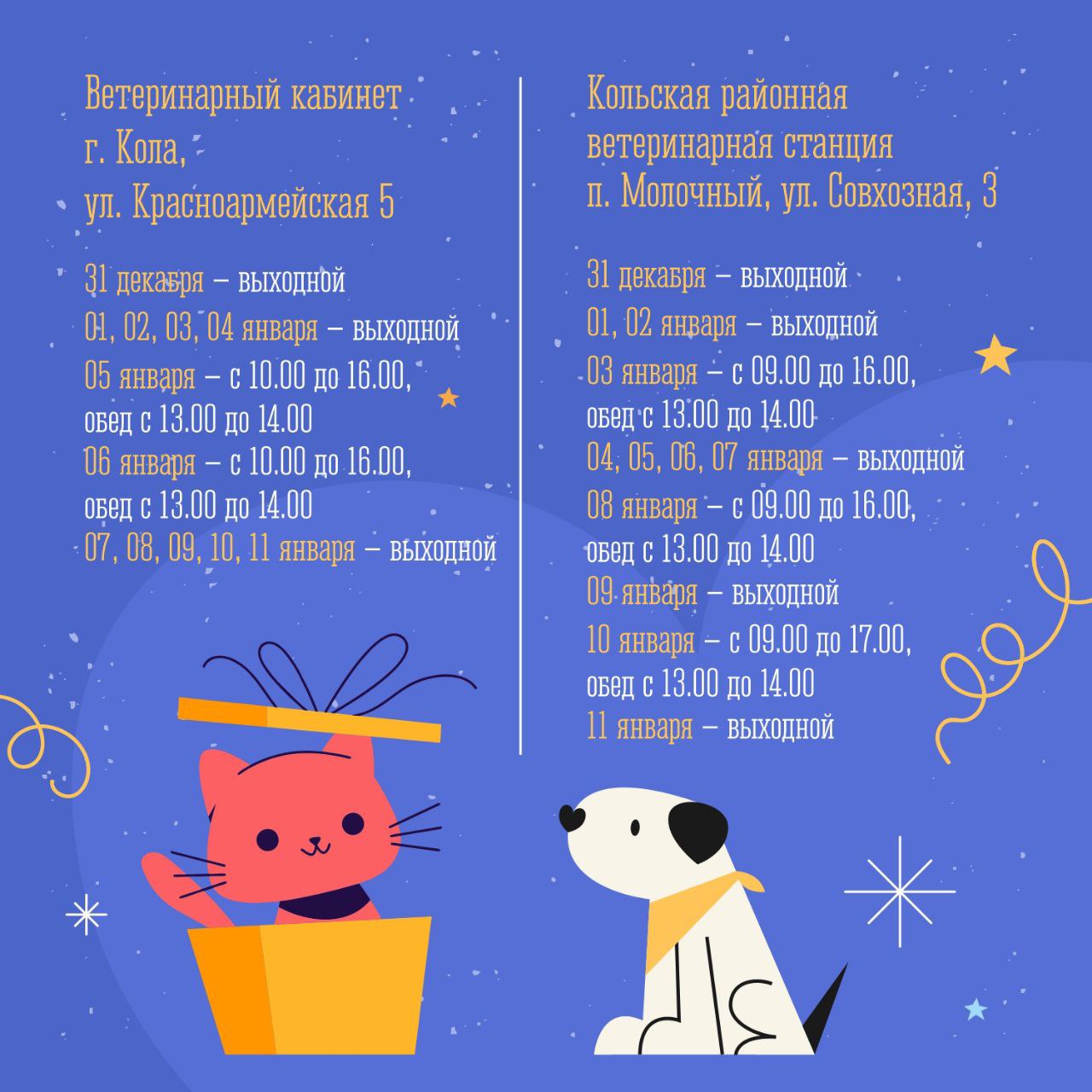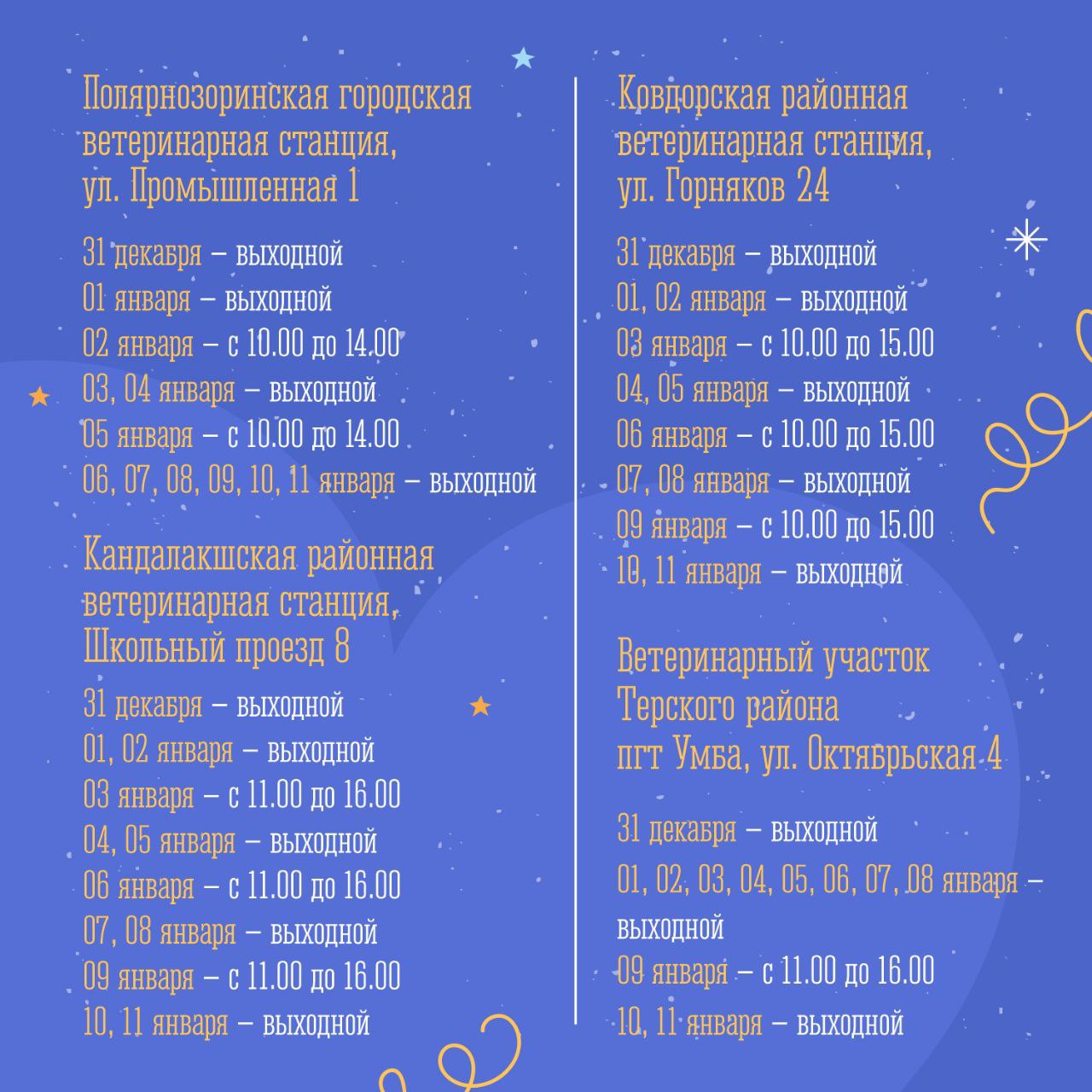 График работы ветстанций Мурманской области доступен на сайте комитета по ветеринарии Мурманской области.