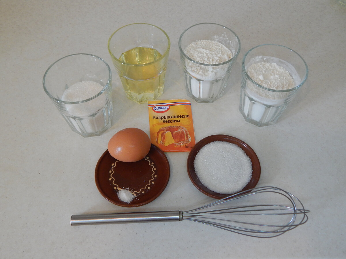 - Сначала взбивается яйцо с сахаром и растительным маслом. Можно это сделать венчиком или миксером — как по вкусу.